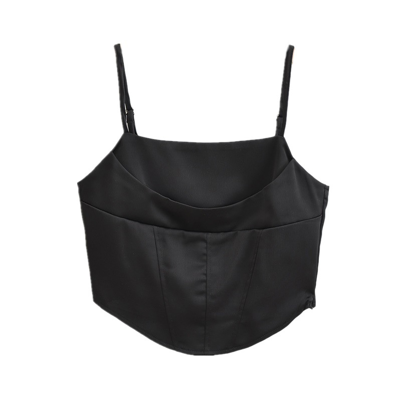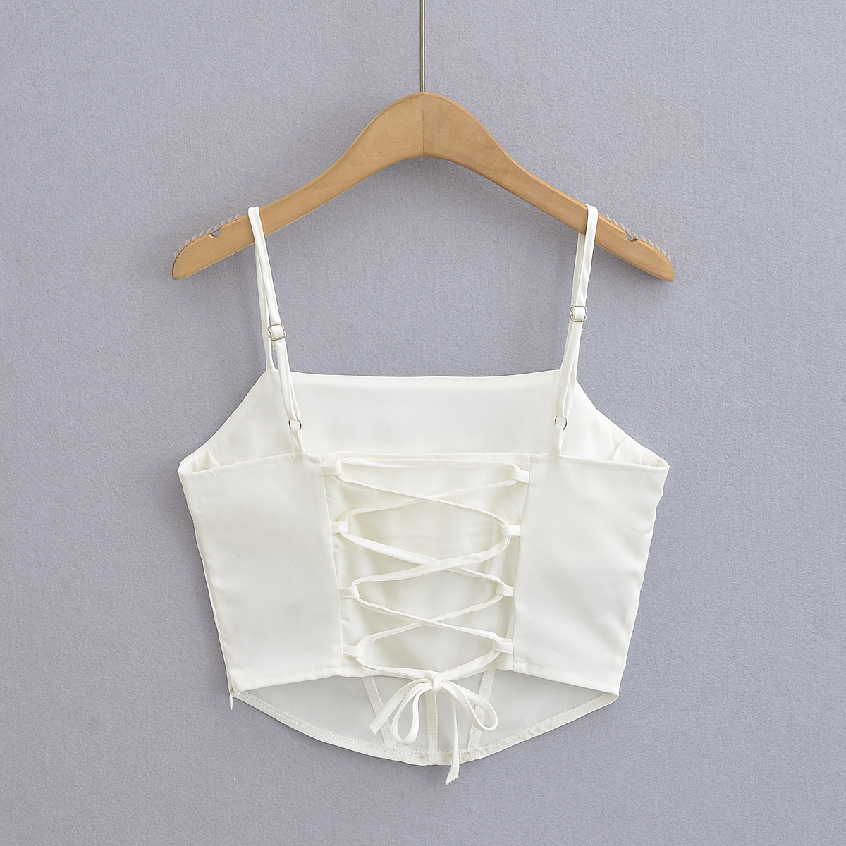 순수한 욕망 스타일 피시본 라인 곡선 조끼 짧은 배꼽 뜨거운 소녀 슬링 슬림 핏 백 크로스 스트랩 섹시한 조끼스토어 가기