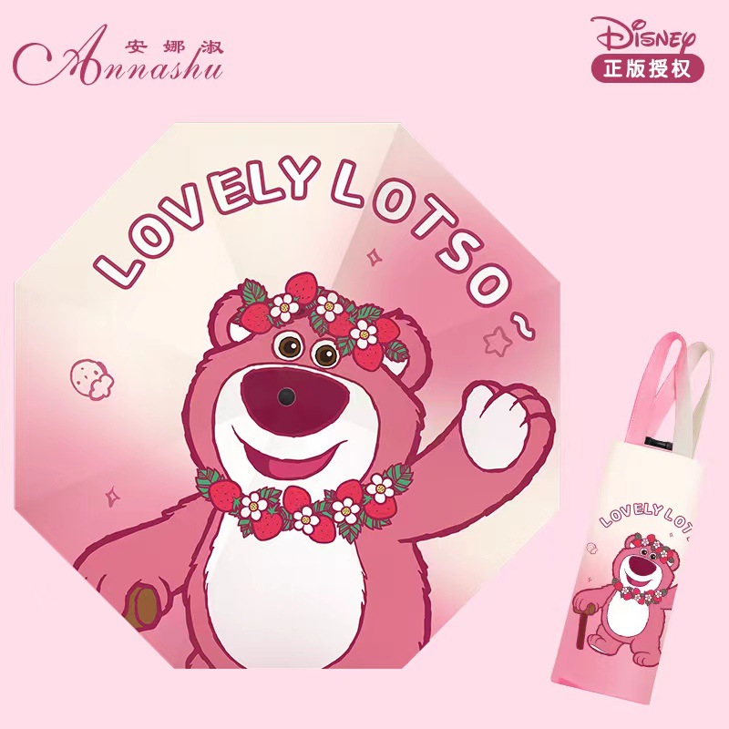 안나 숙 딸기 곰 귀여운 만화 달콤한 3 배 태양 우산 맑고 비 이중 사용 태양 보호 자외선 차단 여성용 블랙 접착제스토어 가기