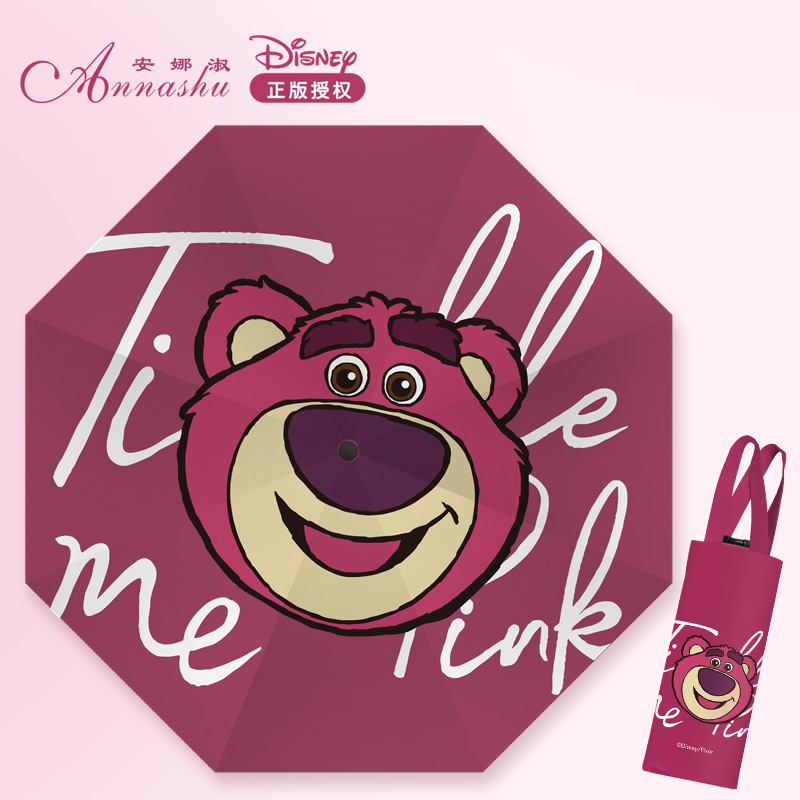 안나 숙 딸기 곰 귀여운 만화 달콤한 3 배 태양 우산 맑고 비 이중 사용 태양 보호 자외선 차단 여성용 블랙 접착제