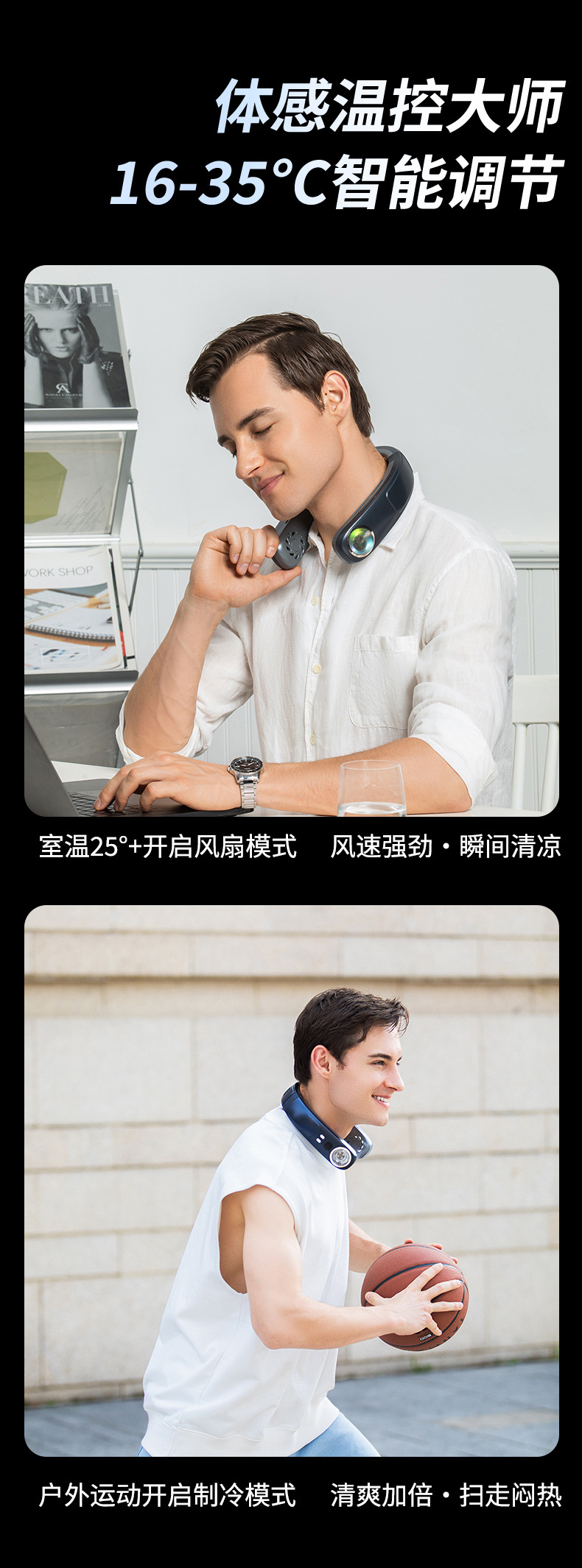 2023 새로운 반도체 교수형 목 팬 휴대용 게으른 냉각 팬 USB 스포츠 야외 교수형 목 팬
