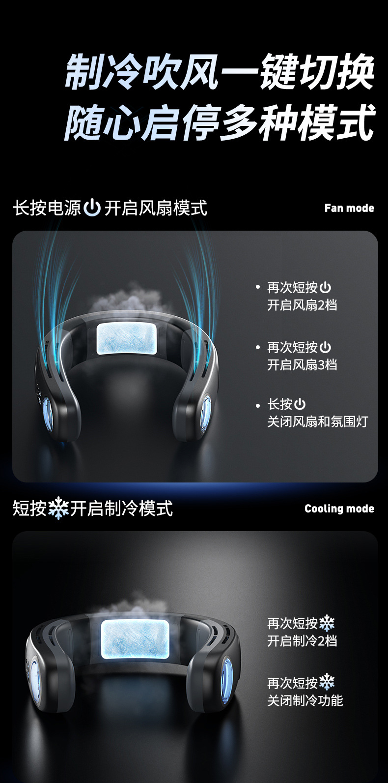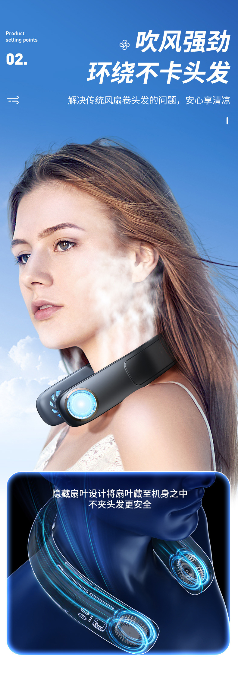 2023 새로운 반도체 교수형 목 팬 휴대용 게으른 냉각 팬 USB 스포츠 야외 교수형 목 팬스토어 가기