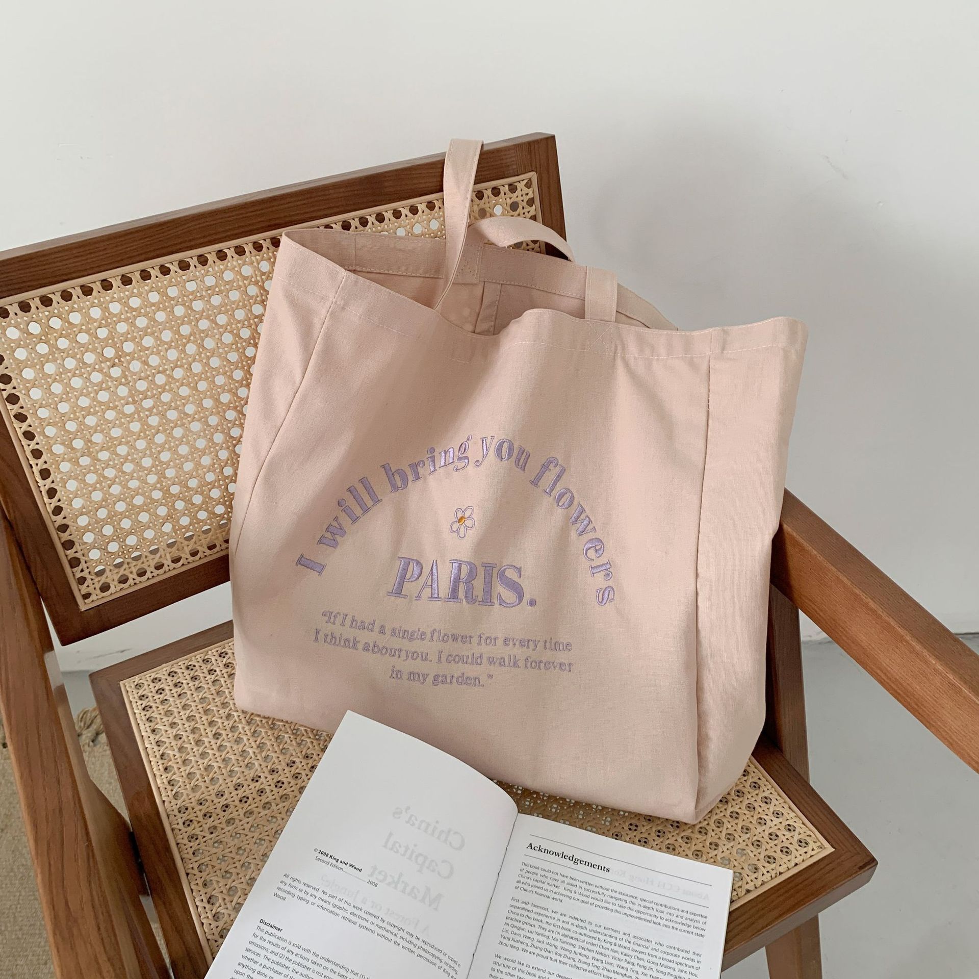 2521 인치 스타일 여성용 캔버스 가방 편지 자수 숄더백 대용량 학생 토트백 쇼핑백