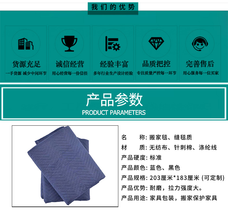 공장 도매 대량 할인 포장 이동 담요 퀼트 담요 안전 보호 담요 펠트 가구 포장 담요 카펫스토어 가기