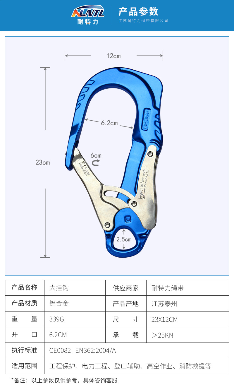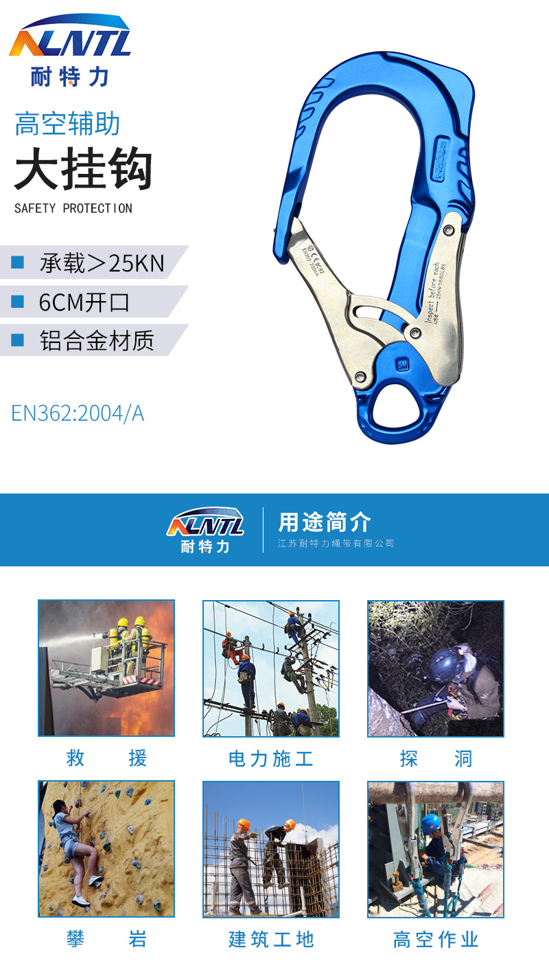 새로운 알루미늄 합금 큰 후크 H609C 안전 후크 6cm 오픈 스틸 파이프 발판 후크 등산 암벽 등산 장비