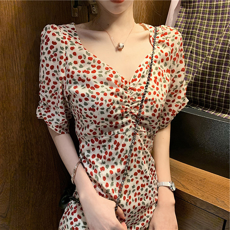 YT11703 프랑스 스타일 휴일 스타일 신선한 스타일 짧은 치마 달콤한 나이 감소 외국 스타일 작은 소녀 꽃 원피스 여성 여름