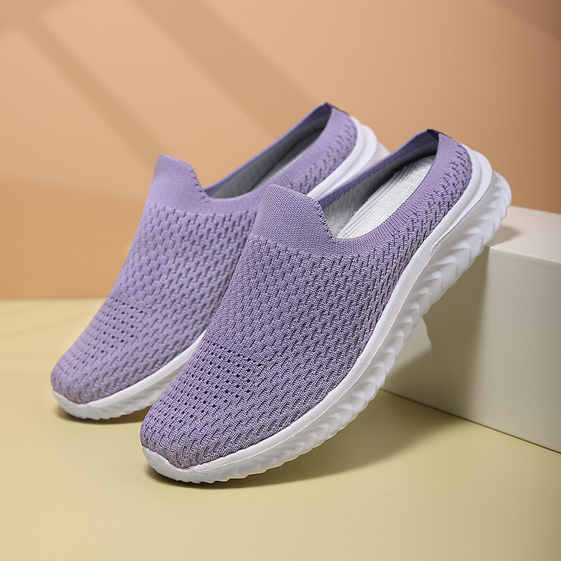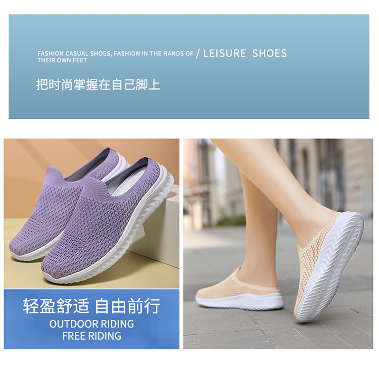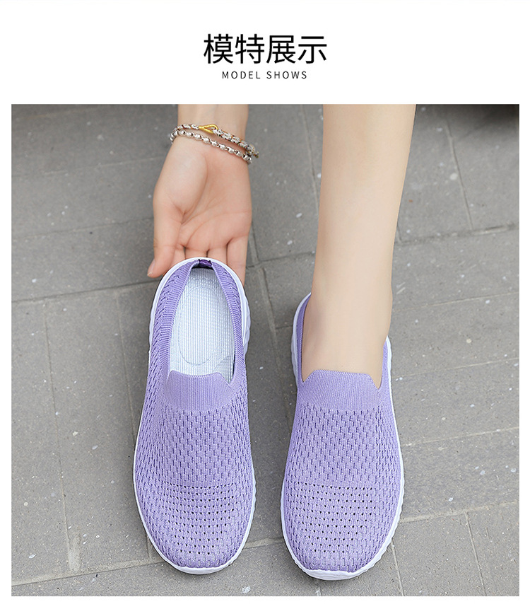 크로스 보더 새로운 캐주얼 패션 여성 신발 통기성 플라잉 짠 플랫 슈즈 여행 신발 슬립온 여성 야외 스포츠스토어 가기