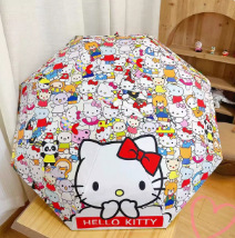 • 주홍색 헬로키티 풀 프린트 자동 파라솔