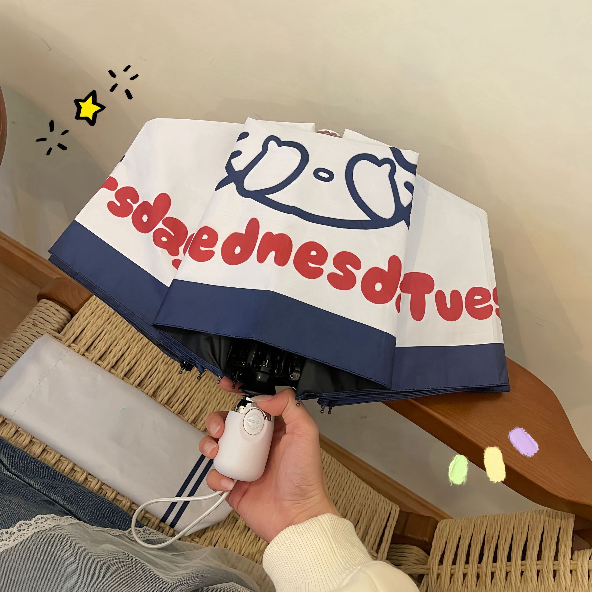 귀엽고 재미있는 고양이 자동 우산, 비와 햇빛 모두에 사용 가능한 블랙 글로시 파라솔, 자외선 차단 접이식 태양 우산