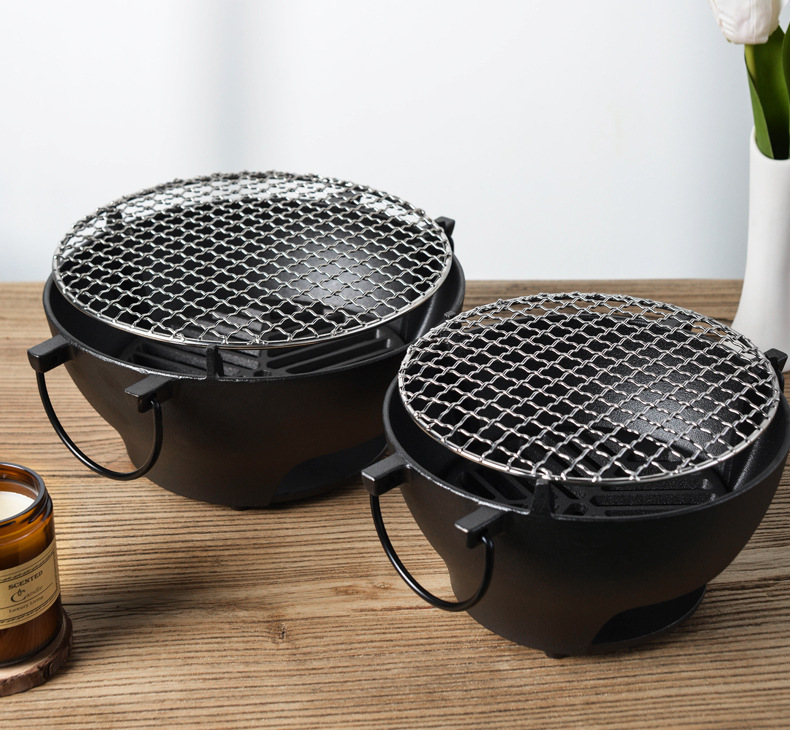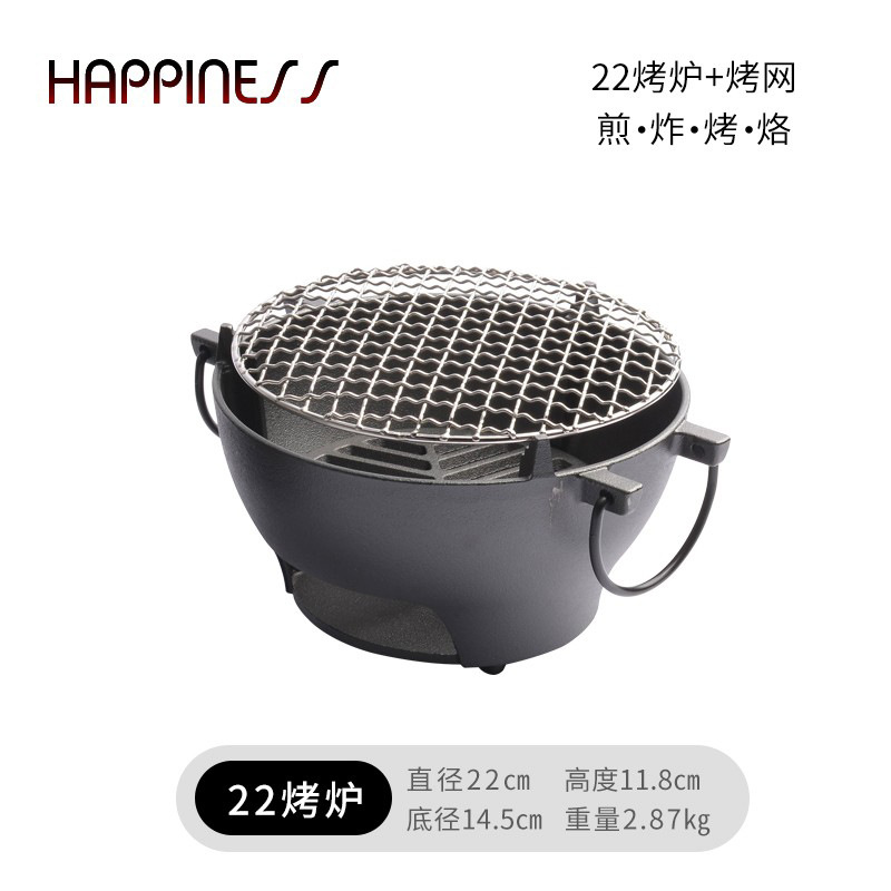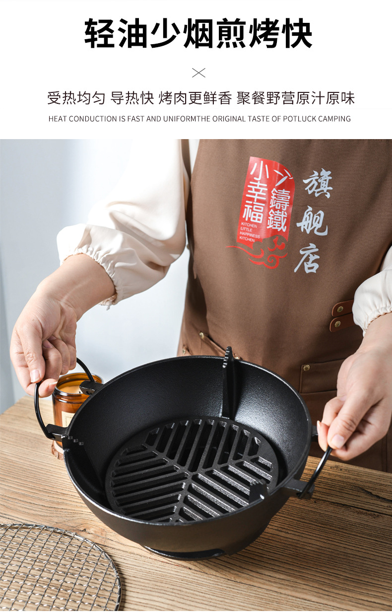 • 22cm 주철 바베큐 그릴 + 그릴 그리드 + 나무 트레이