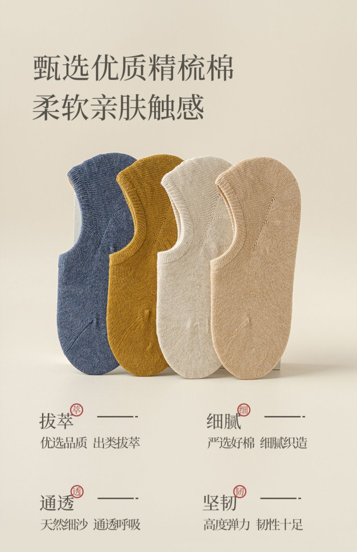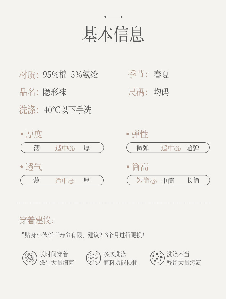 • 베이지 보이지 않는 소매 여성 양말