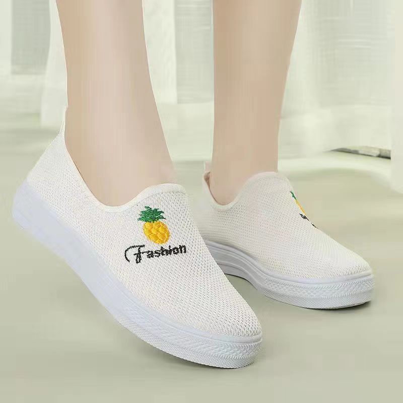 2023 새로운 사계절 중공 메쉬 여성 신발 한국 캐주얼 통기성 어머니 여성 운동화 슬립온 신발스토어 가기