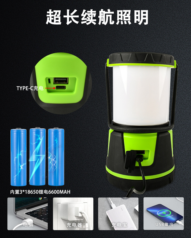 • Type-c 충전 2000루멘 녹색 SMD 램프 비드 충전 모델(빨간색 표시등 깜박임 제외)(리튬 배터리 내장)