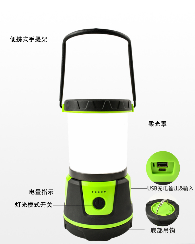 • Type-c 충전 1000루멘 그린 충전 모델(리튬 배터리 내장)