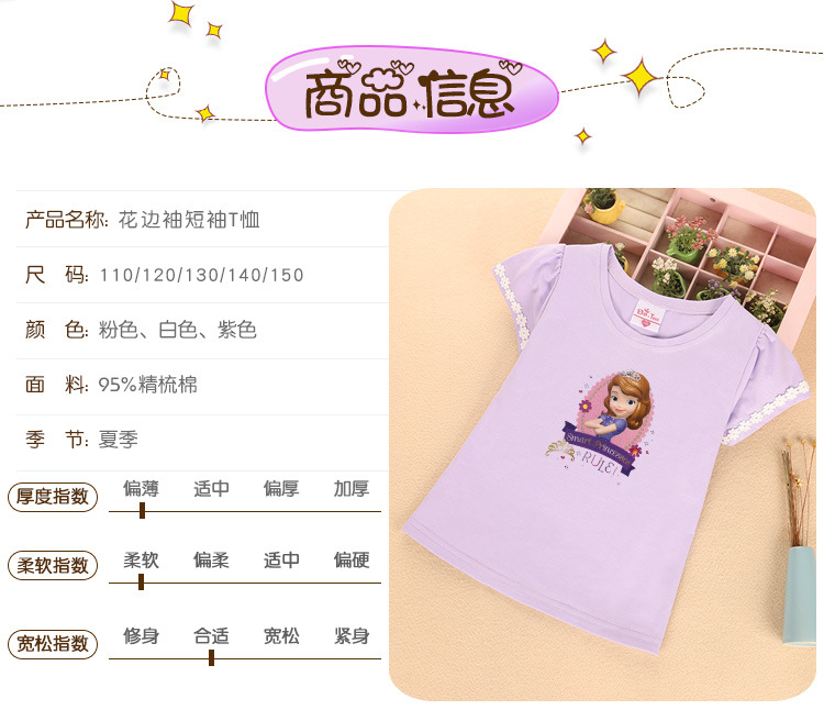 어린이 반팔 티셔츠 아기 여름 소녀 자켓 소피아 공주 여름 대외 무역 아동 의류 타오바오 머리카락 세대