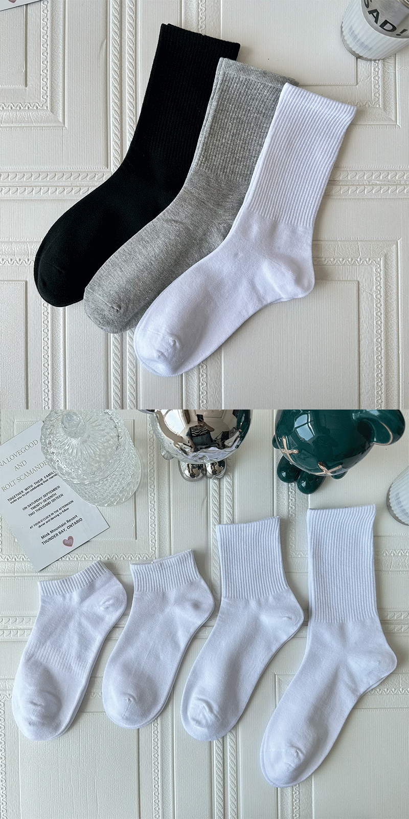 Ji Four 코끼리 양말 여성용 한국식 솔리드 컬러 중형 양말 빗질 남성 및 여성용 사계절 화이트 스포츠 양말 블랙 짧은 양말스토어 가기