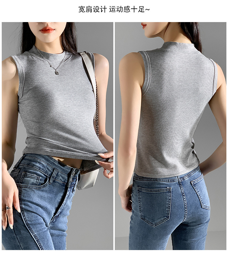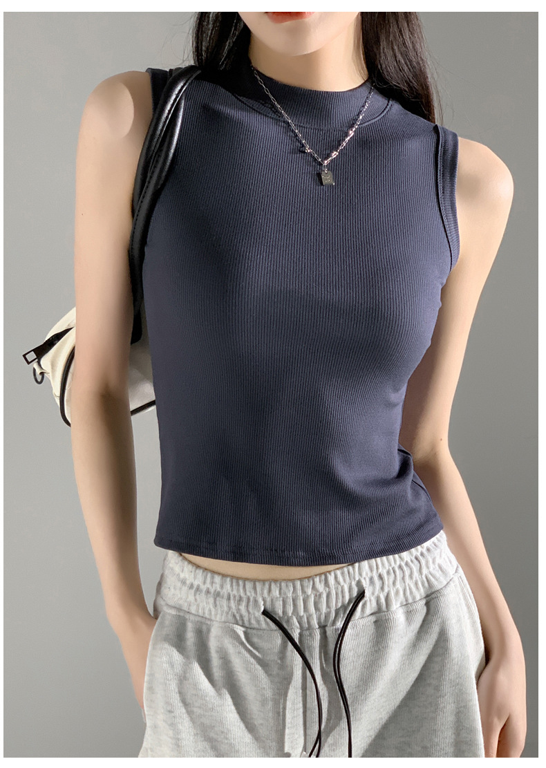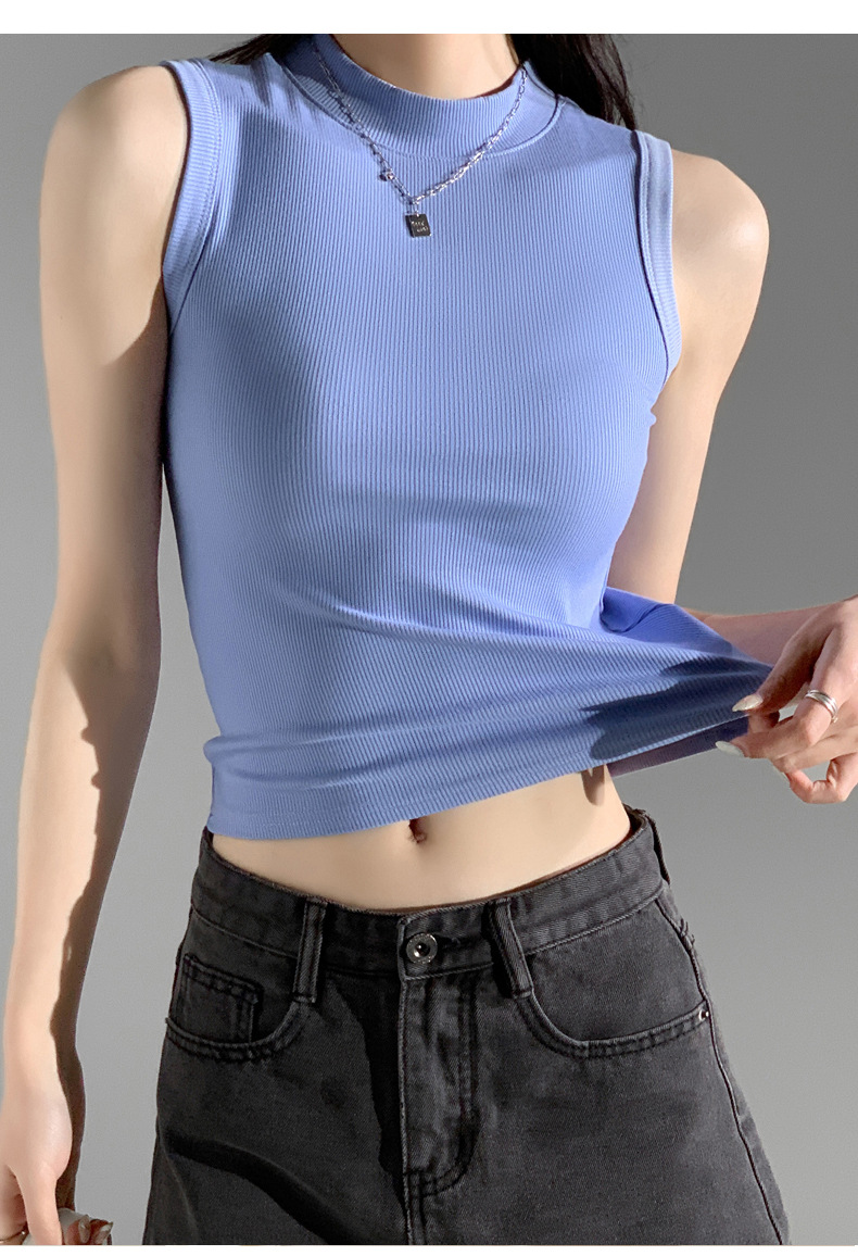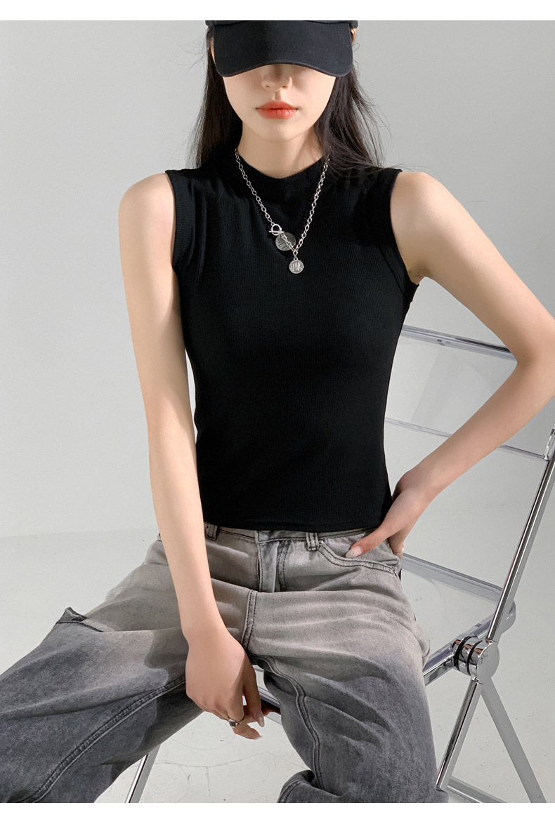 엄선된 폭발성 라운드 넥 캐미솔 여성용 여름 얇은 겉옷 내부 실 베이스 셔츠 슬림핏 민소매 탑