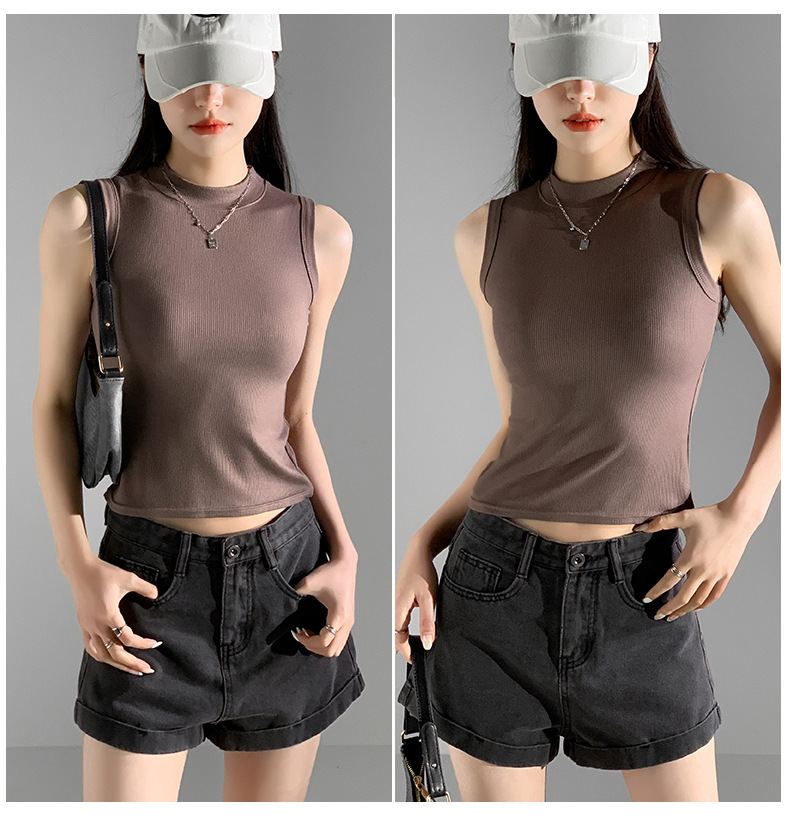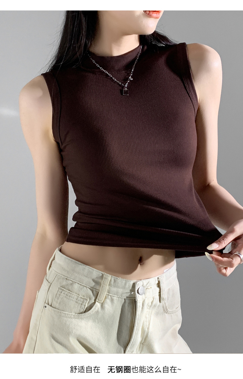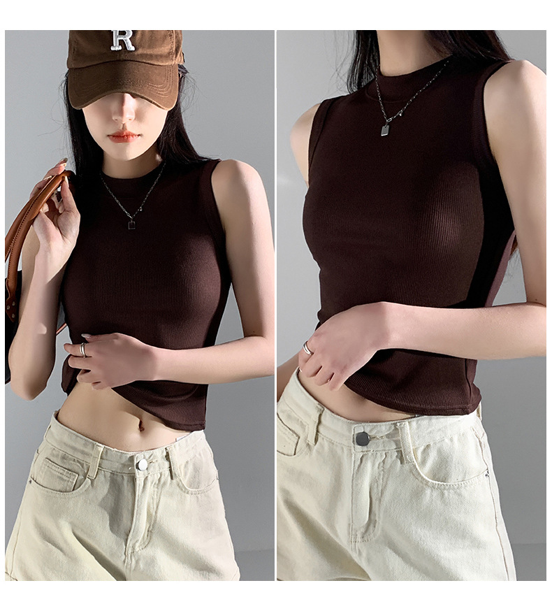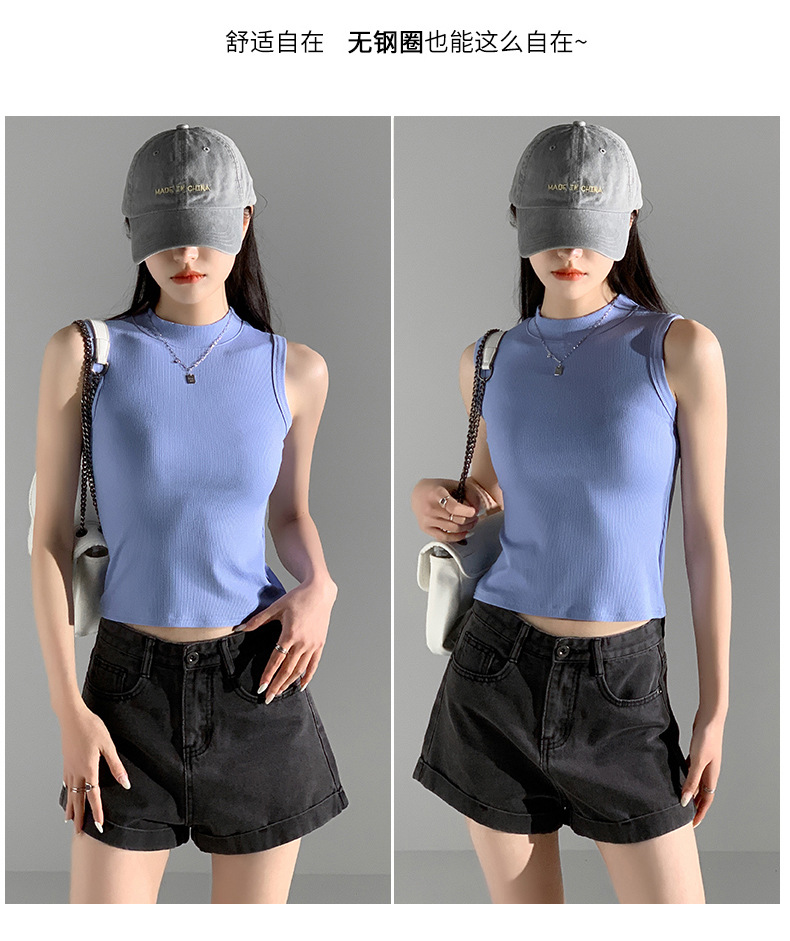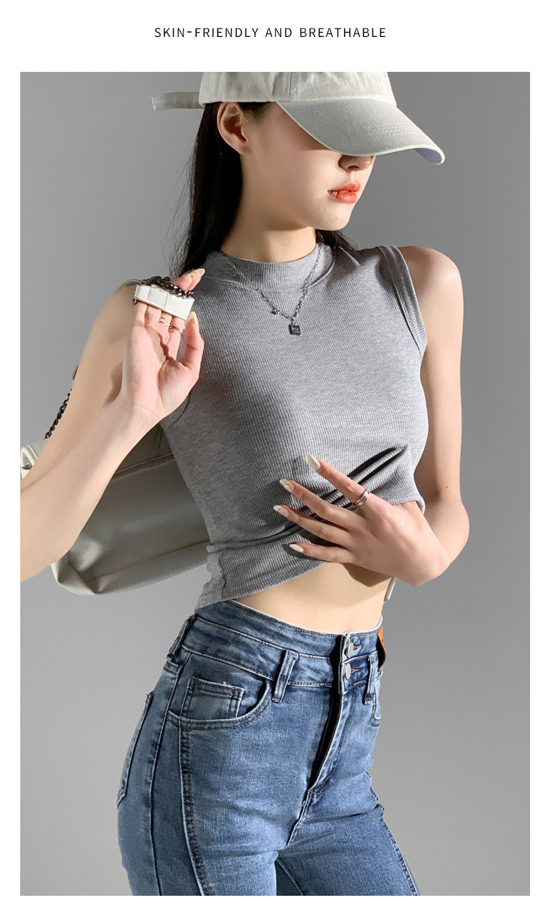 엄선된 폭발성 라운드 넥 캐미솔 여성용 여름 얇은 겉옷 내부 실 베이스 셔츠 슬림핏 민소매 탑