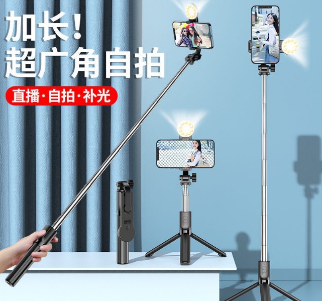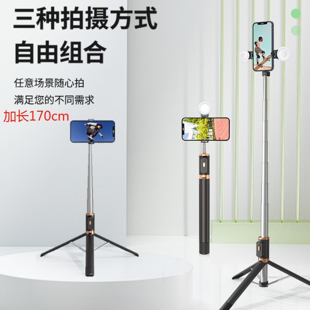 1.7M 스테인리스 셀카봉 블루투스 리모컨 사진 촬영 휴대폰 거치대 라이브 방송 삼각대 세로 촬영 접이식
