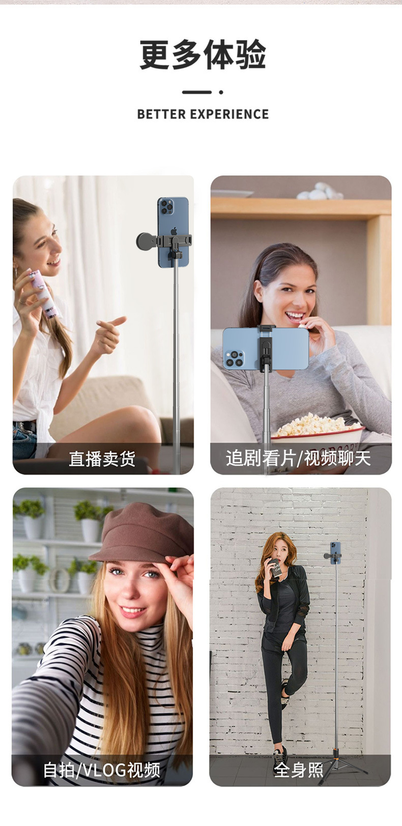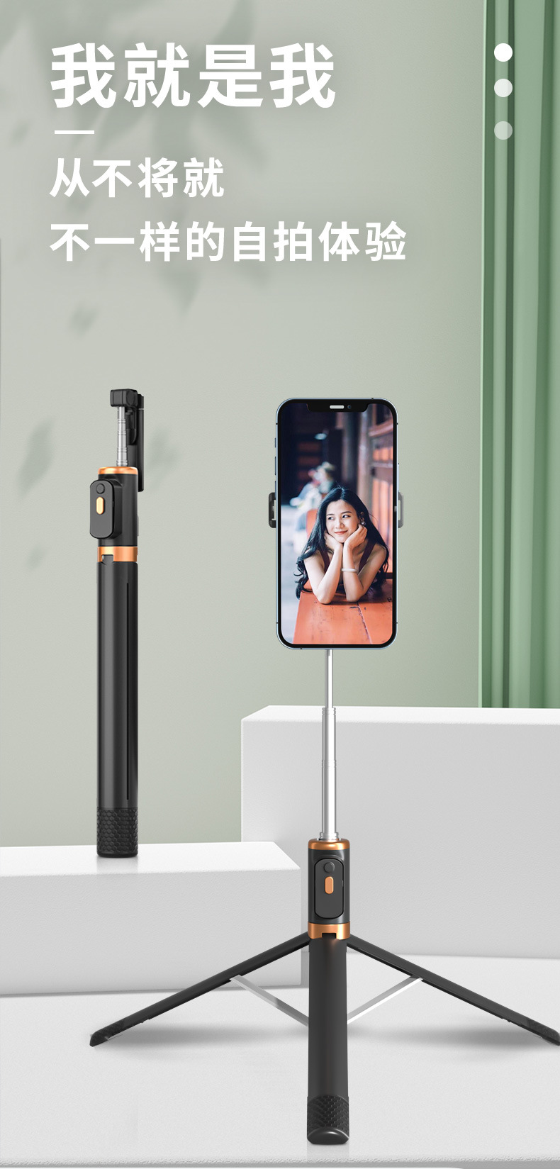 1.7M 스테인리스 셀카봉 블루투스 리모컨 사진 촬영 휴대폰 거치대 라이브 방송 삼각대 세로 촬영 접이식스토어 가기