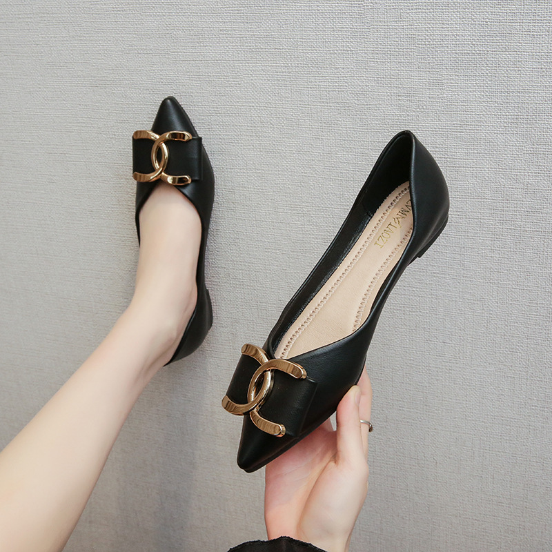부드러운 가죽 신발 여성의 플랫 2023 새로운 여름 패션 신발 패션 기질 국자 신발 플러스 사이즈 여성 신발 41-43스토어 가기