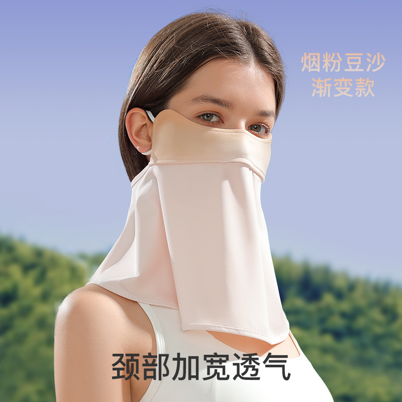 2023 여름 아이스 실크 자외선 차단제 마스크 여성용 양산 통기성 그라데이션 홍당무 그라데이션 눈 각도 보호 UV 마스크
