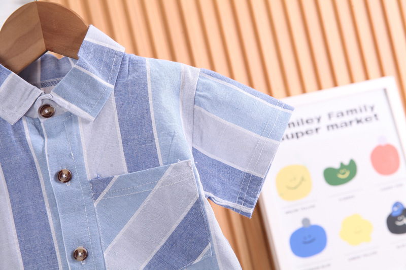 옷깃 소년 여름 23 년 세트 새로운 아기 서양 스타일 어린이 반팔 컬러 매칭 셔츠 어린이 옷 잘 생긴