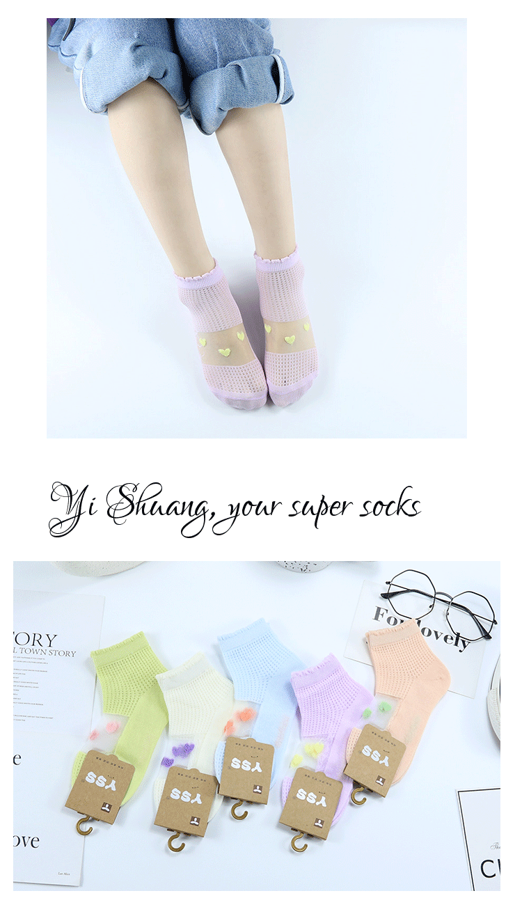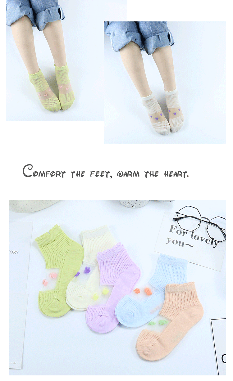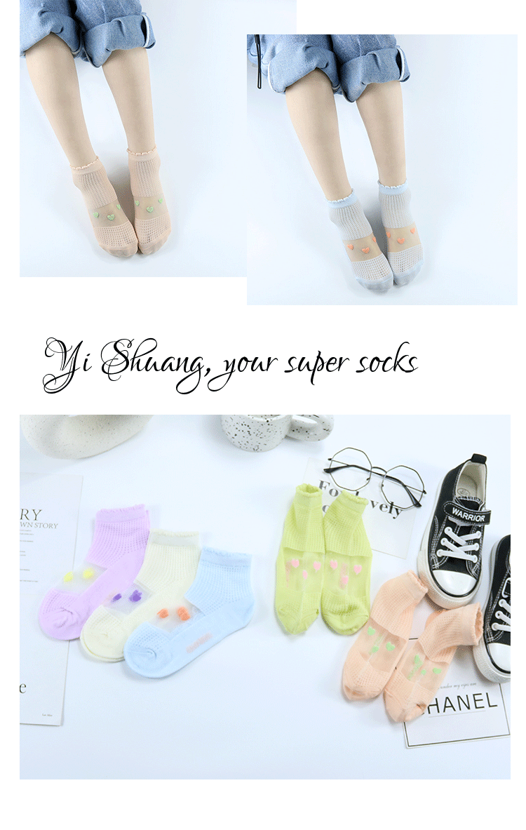 어린이 양말 여름 새로운 대형 그물 초박형 만화 크리스탈 실크 사랑 양말 빗질면 학생 양말스토어 가기