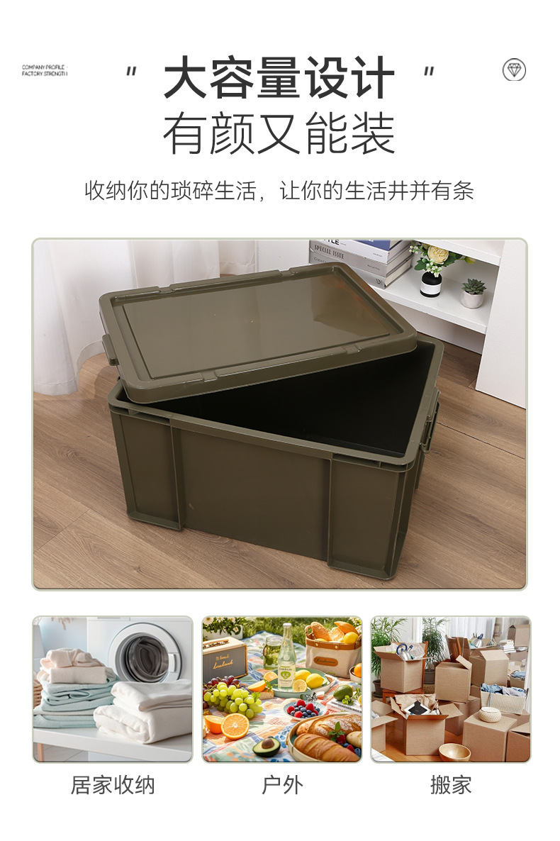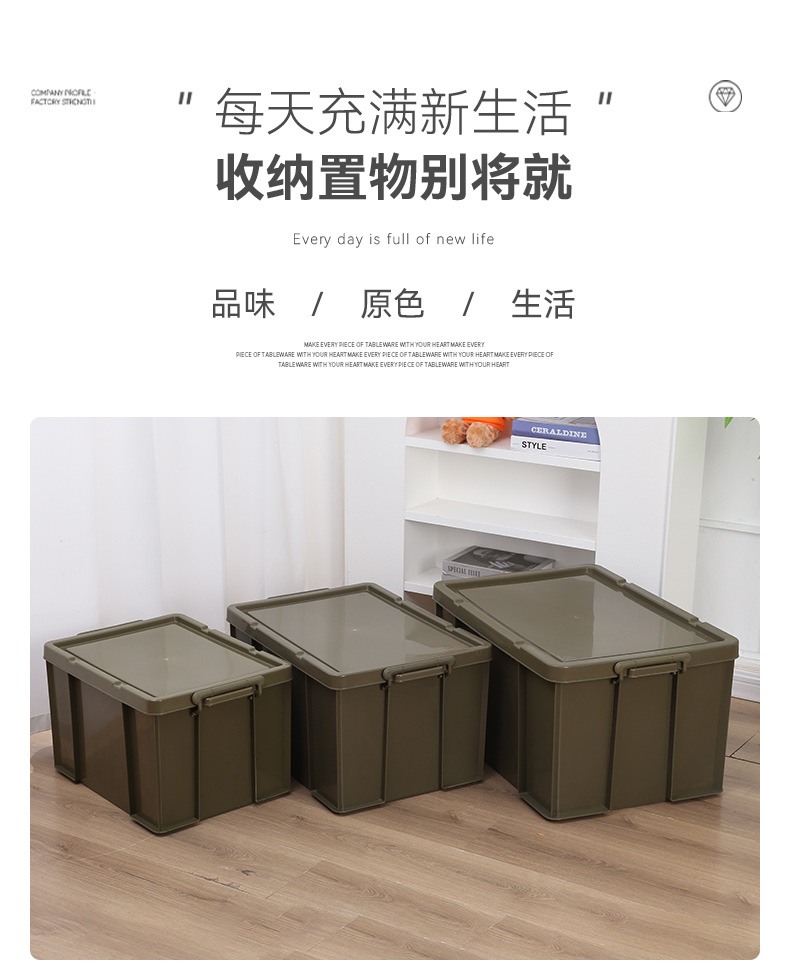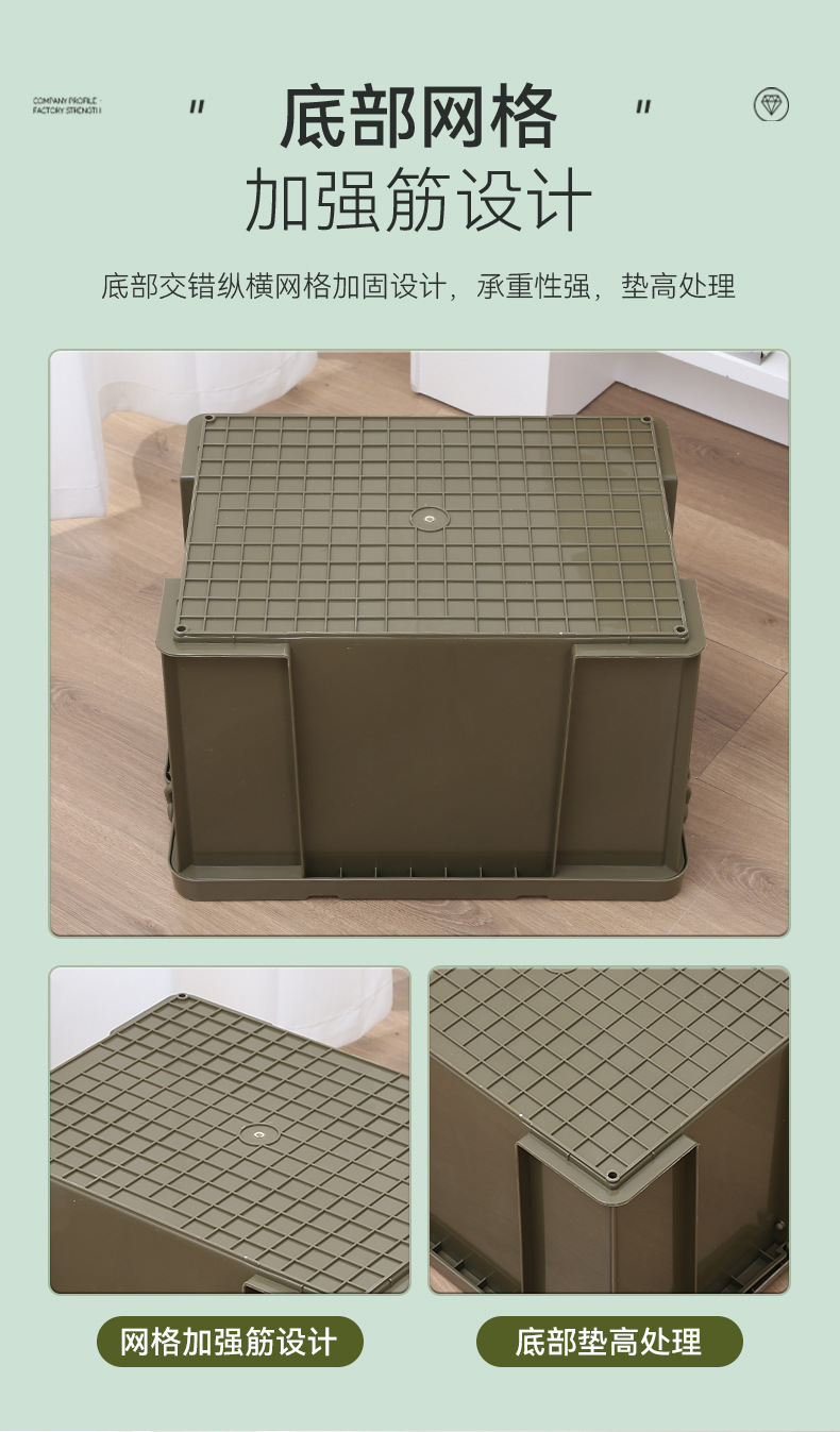 야외 캠핑 대형 플라스틱 보관함 카키 품목 보관함 휴대용 두꺼운 보관함