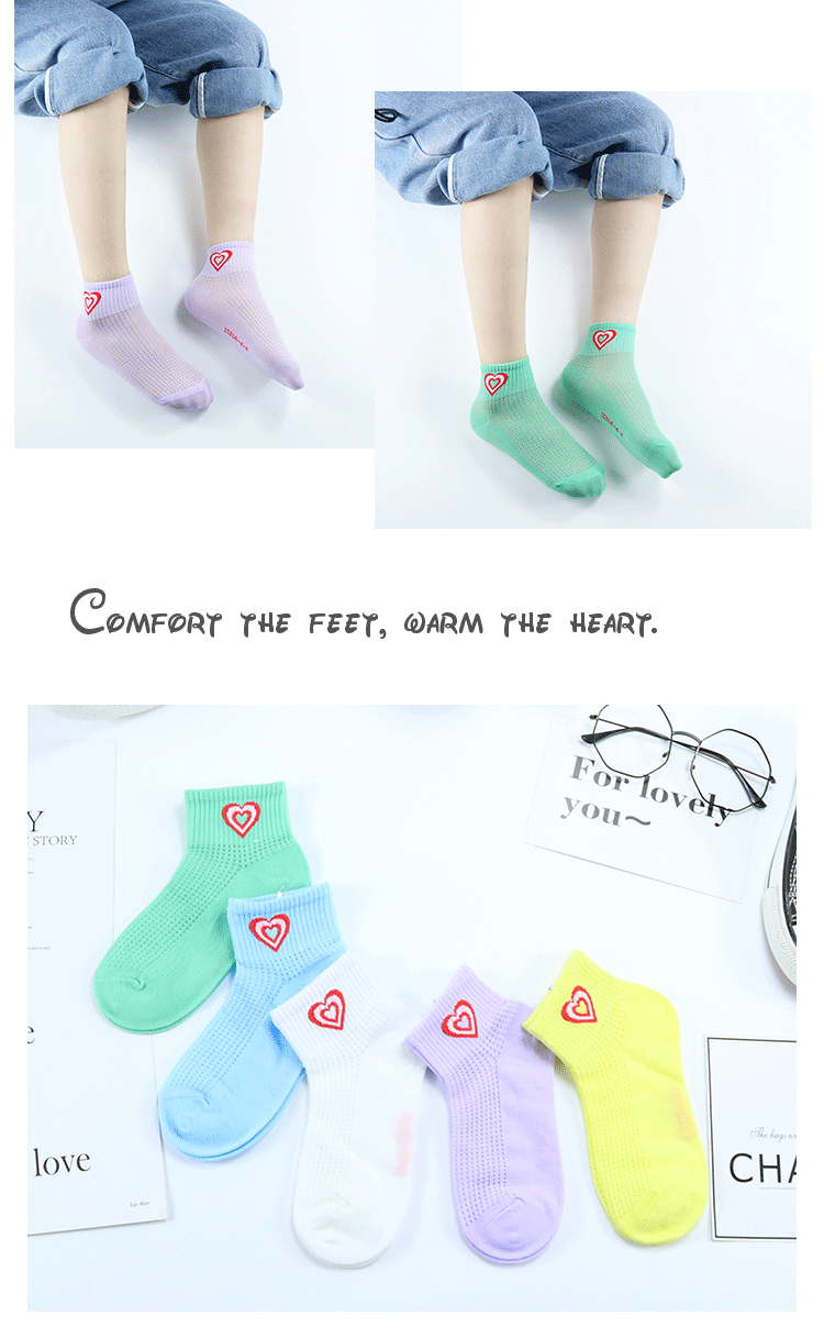 이순신 어린이 양말 여름 새로운 대형 그물 초박형 한국 사랑 양말 빗질면 만화 소녀 면화 양말
