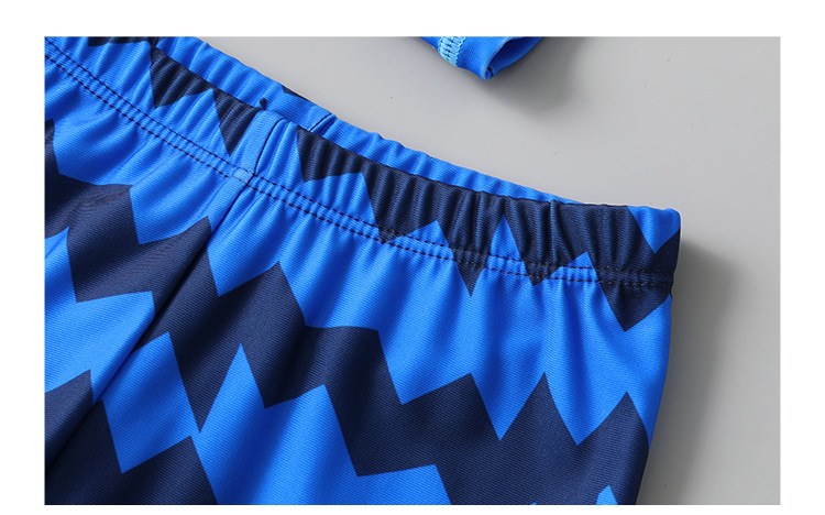 남성용 큰 어린이의 새로운 속건 수영복 블루 한국식 남성용 통통한 아기 스플릿 긴팔 자외선 차단제 스포츠 수영복 (수영 모자 포함)