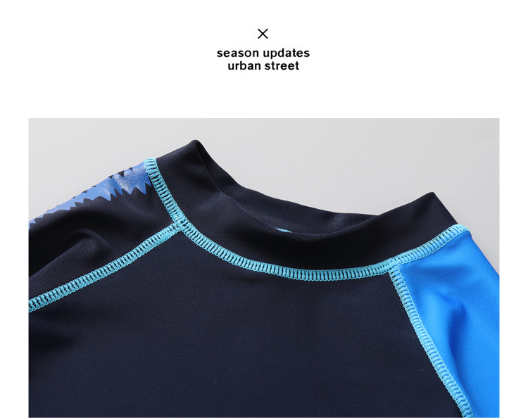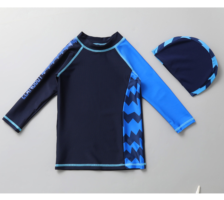 남성용 큰 어린이의 새로운 속건 수영복 블루 한국식 남성용 통통한 아기 스플릿 긴팔 자외선 차단제 스포츠 수영복 (수영 모자 포함)스토어 가기