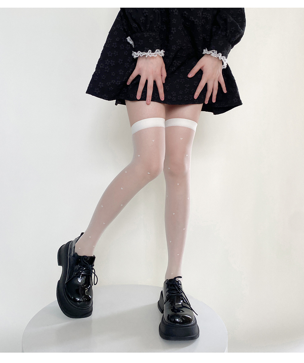 무릎 위 양말 여자의 여름 얇은 임의 컷 흰색 순수한 욕망 허벅지 스타킹 사랑 물방울 무늬 섹시한 검은 실크 높은 스타킹스토어 가기