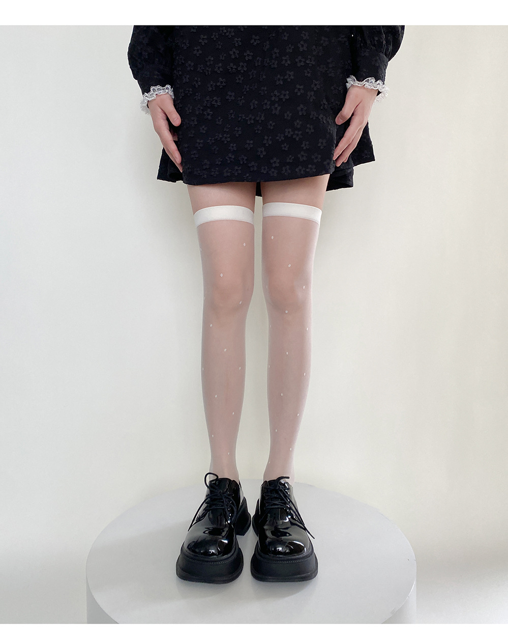 무릎 위 양말 여자의 여름 얇은 임의 컷 흰색 순수한 욕망 허벅지 스타킹 사랑 물방울 무늬 섹시한 검은 실크 높은 스타킹