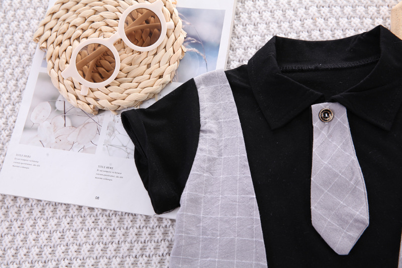 남아 세트 2023 새로운 어린이 여름 옷 한국 넥타이 조끼 어린이 반팔 얇은 서양 스타일 아기 옷스토어 가기