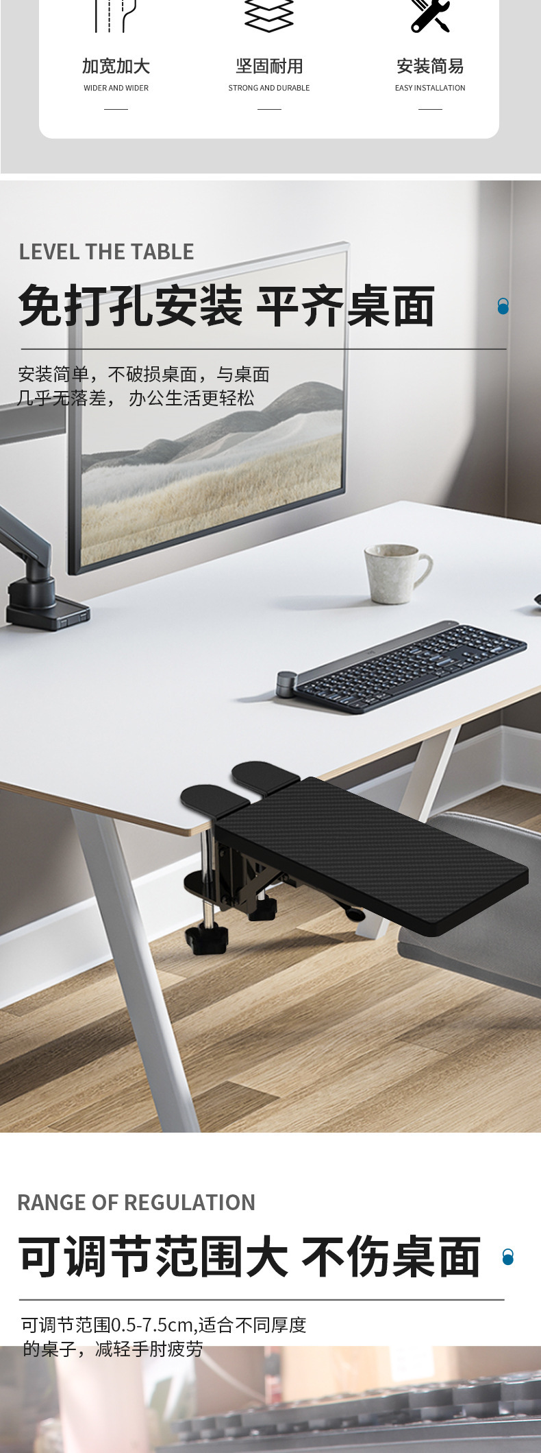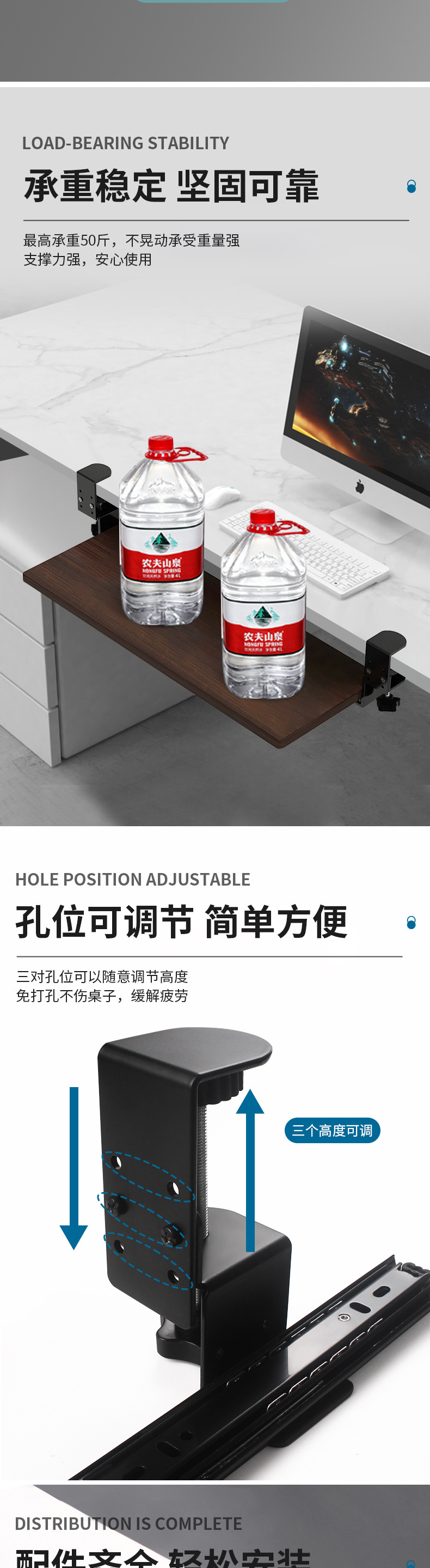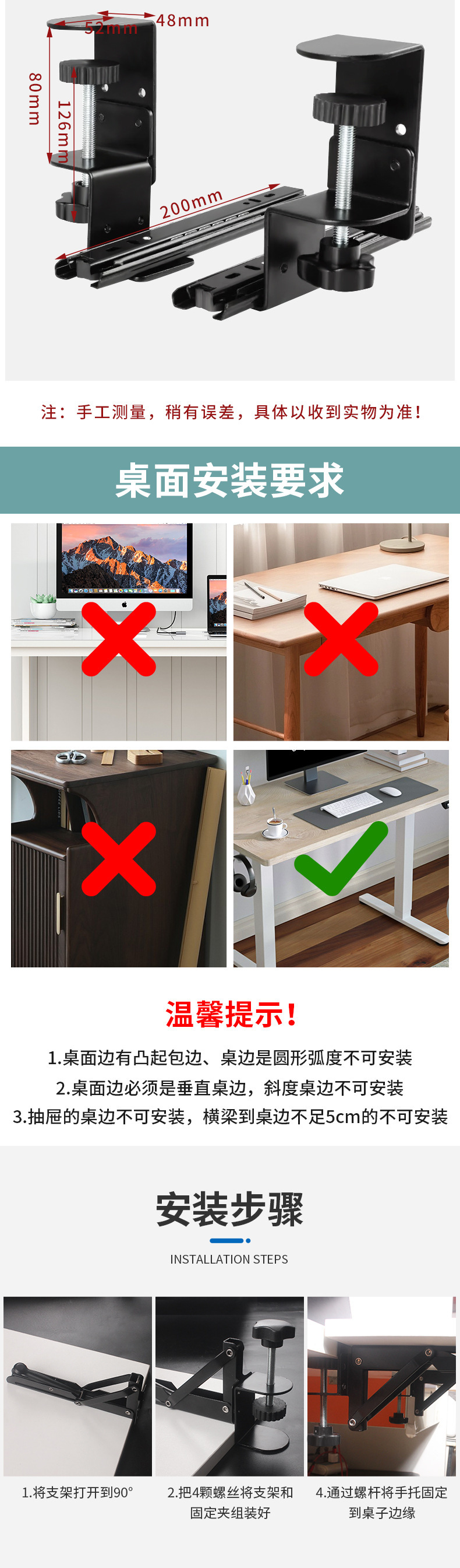 • 조정 가능한 슬라이드 레일 모델 [10-70mm 클램프 가능]에는 나무 보드가 함께 제공되지 않습니다.