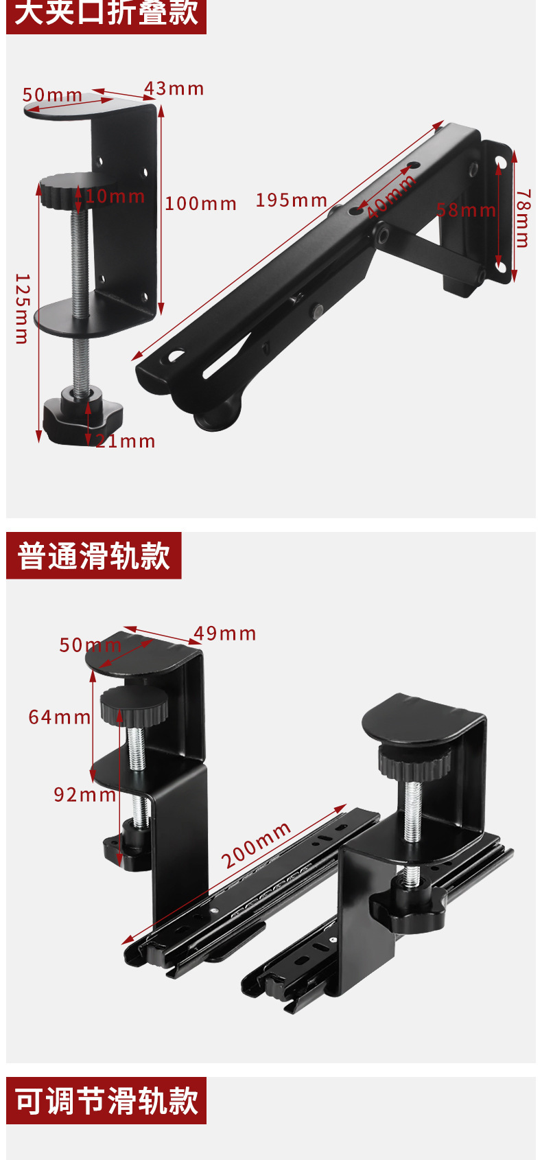 • 대형 클램프 접이식 모델 [10-90mm 클램프 가능]에는 나무판이 포함되어 있지 않습니다.