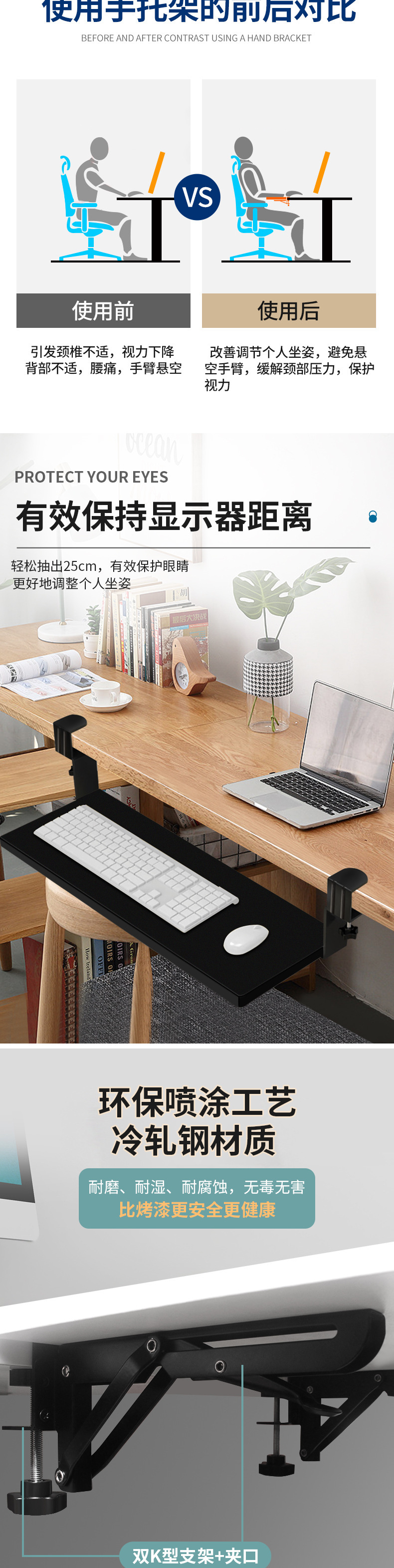 키보드 브래킷 펀치 프리 서랍 랙 설치 무료 데스크탑 슬라이드 레일 클립 언더 테이블 브래킷 컴퓨터 마우스 보관 랙스토어 가기