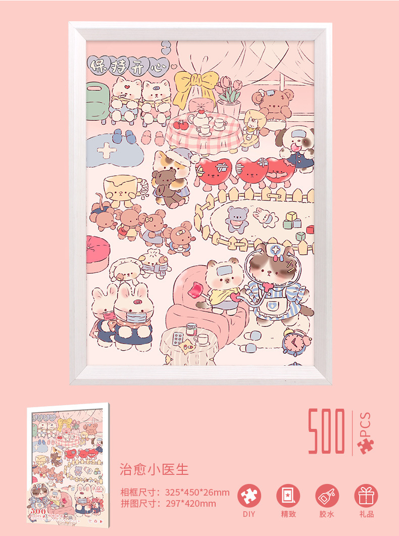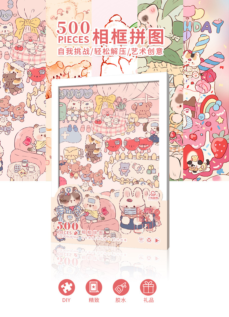 500 만화 종이 비행기 퍼즐 박스형 치유 레저 감압 시리즈 어린이 교육 장난감 생일 선물