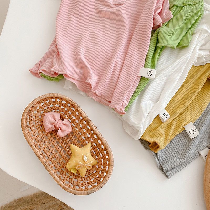 여름 아기 소녀 멋진 티셔츠 반팔 라펠베이스 셔츠 베이비 얇은 반팔 탑 올매치 모달 티셔츠