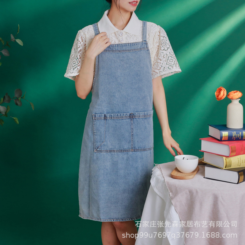 2023 신상품 내마모성 사이버 연예인 데님 앞치마 밀크 티 커피 숍 홈 주방 성격 그림 더러움 방지 패션 바지스토어 가기