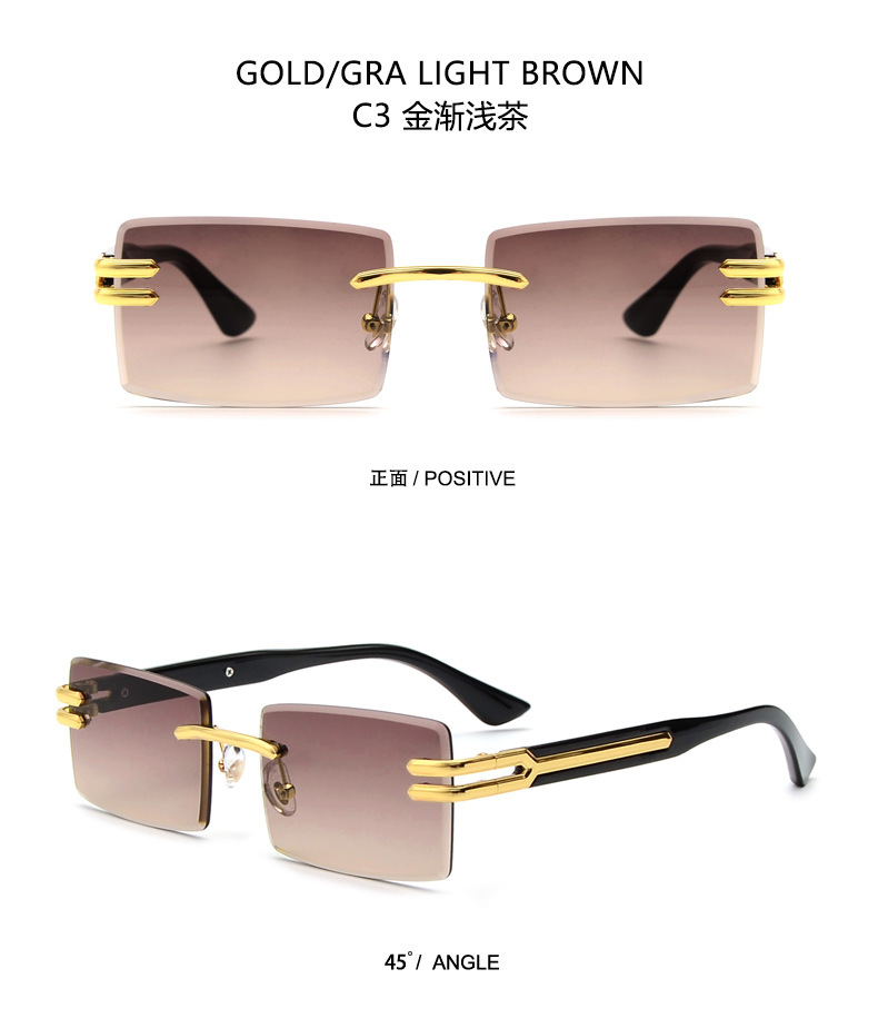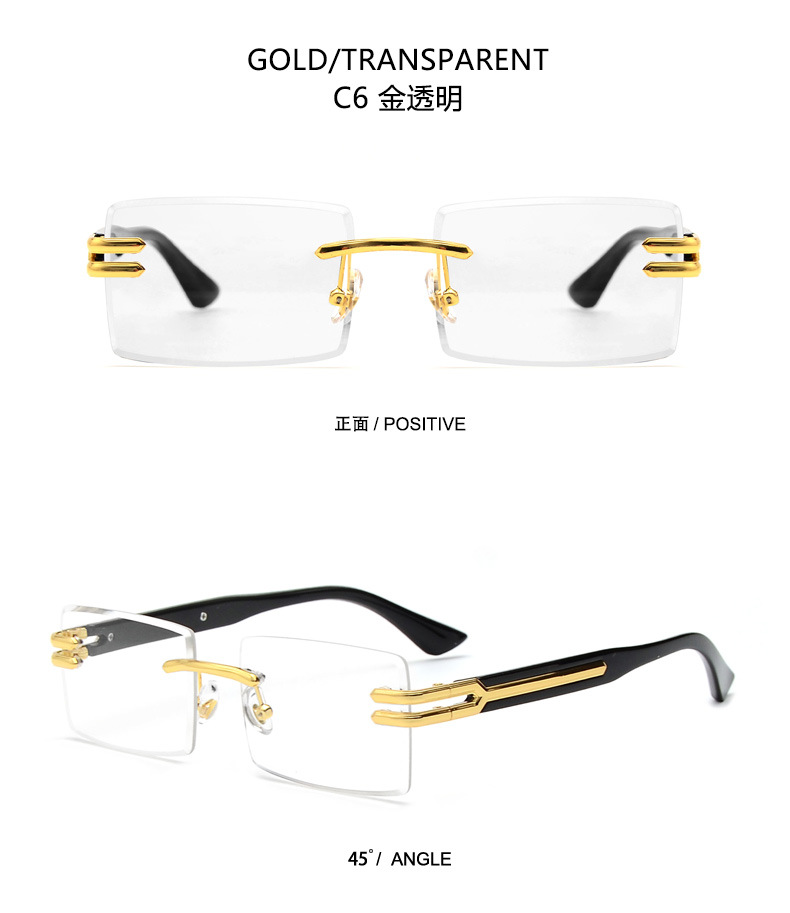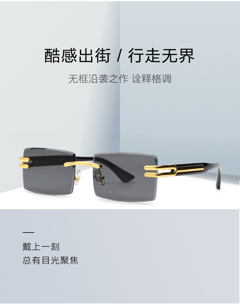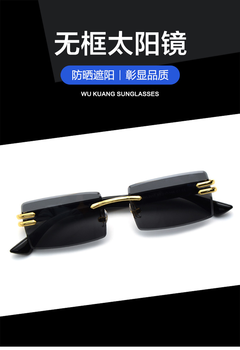 WL2017 스퀘어 패션 프레임리스 패션 높은 안티 자외선 새로운 개인화 된 선글라스 남성용 금속 운전 운전