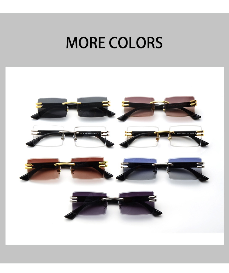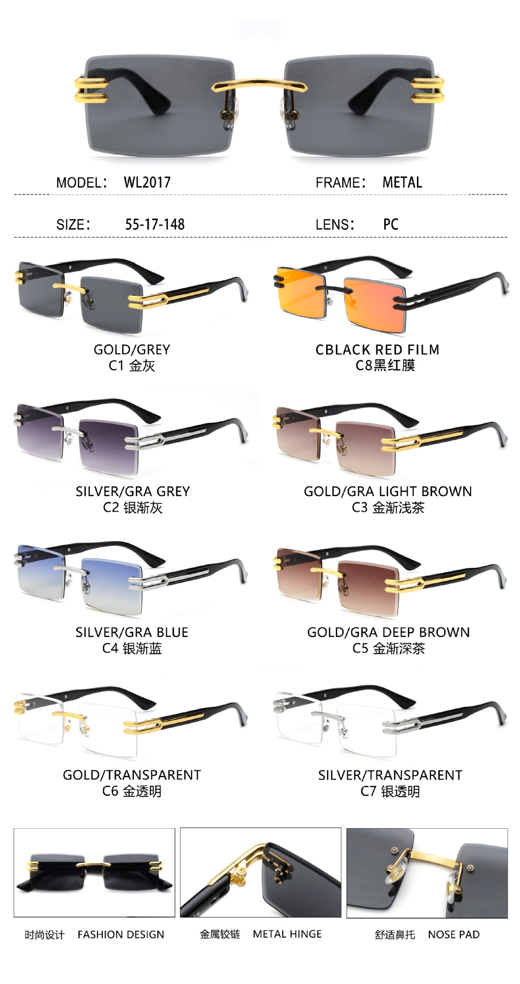 WL2017 스퀘어 패션 프레임리스 패션 높은 안티 자외선 새로운 개인화 된 선글라스 남성용 금속 운전 운전스토어 가기