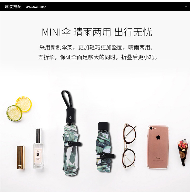 수동 3 중 8 본 검정 고무 우산 새로운 소형 신선한 선크림 차양 우산 이중 사용 접이식 우산 도매스토어 가기