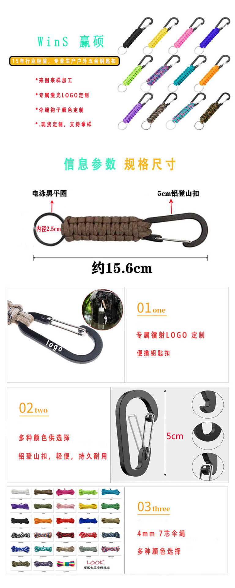 如需其他颜色(登山扣/伞绳/钥匙圈)请联系我们或者订单备注!!!
