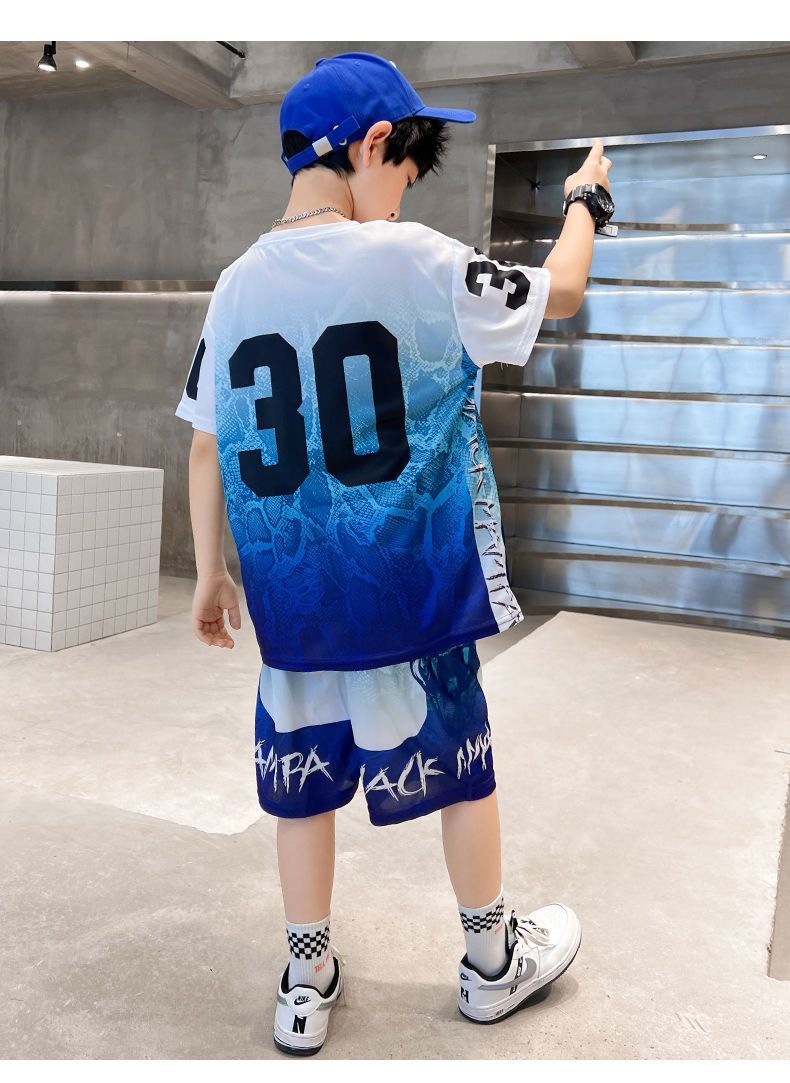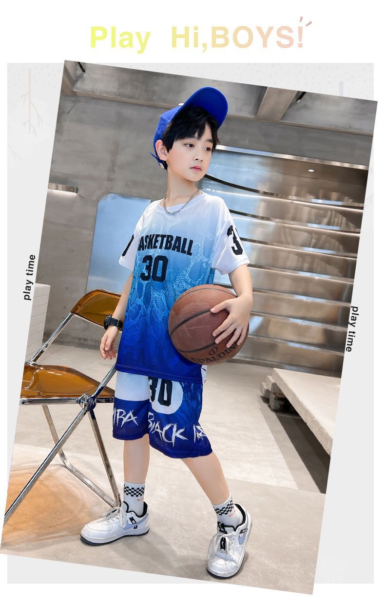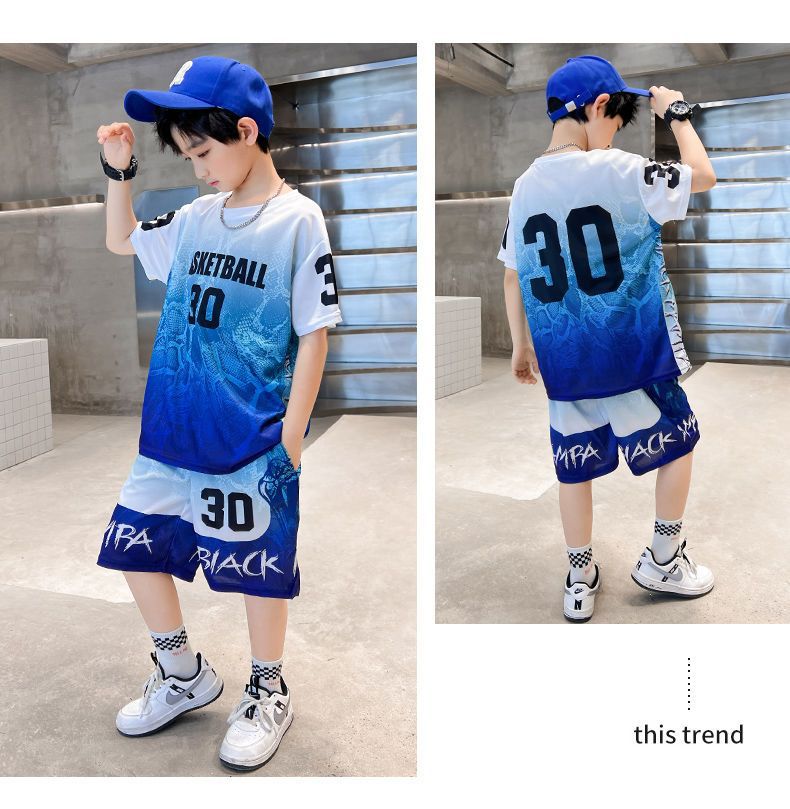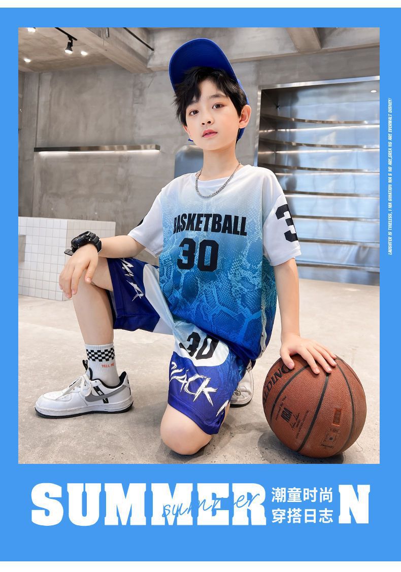 소년의 속건성 농구 유니폼 여름 정장 2025 새로운 스타일 멋지고 잘 생긴 중대형 어린이 여름 스포츠 스타일 어린이 여름 스타일스토어 가기