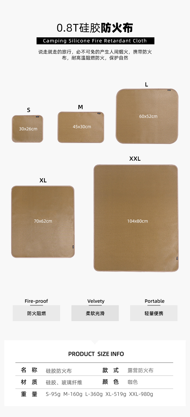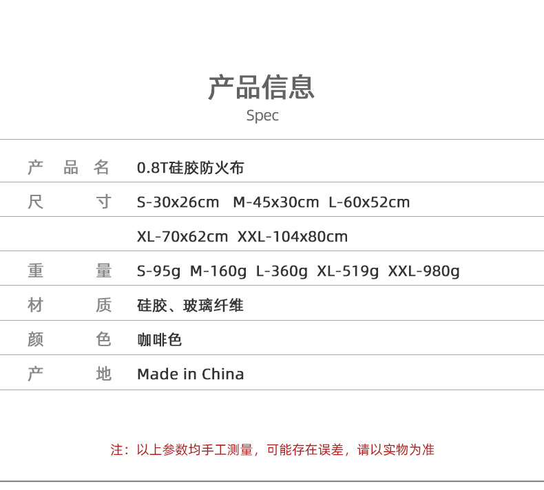 • XXL "두께 0.8T" 내화 cloth-104x80cm