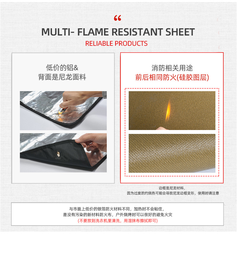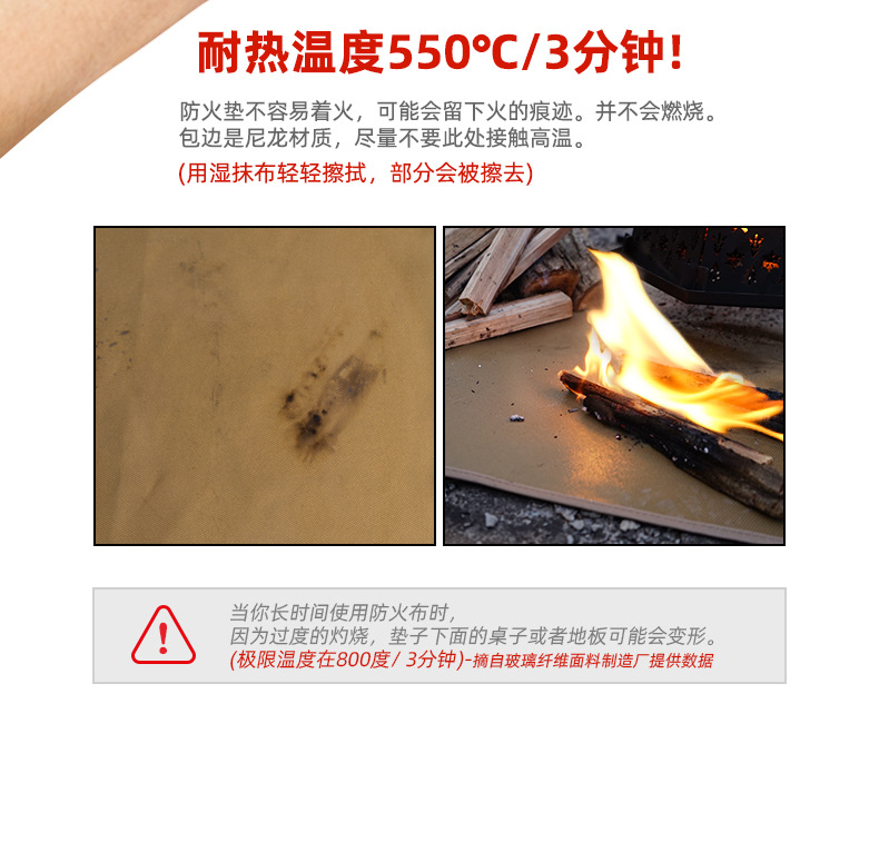 야외 캠핑 내화 천 실리콘 단열 난연 고온 저항 유리 섬유 천 화재 담요 캠핑 바베큐 테이블 매트