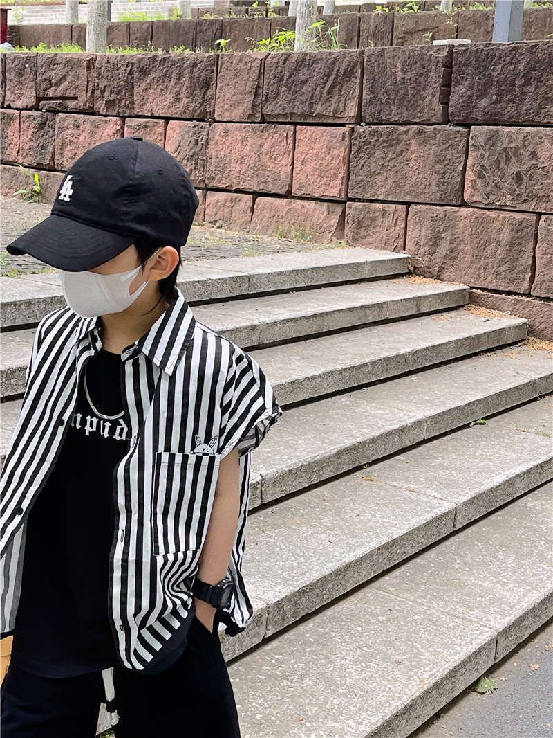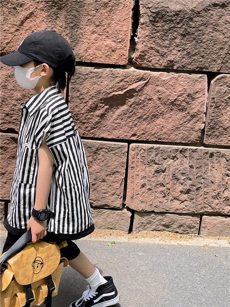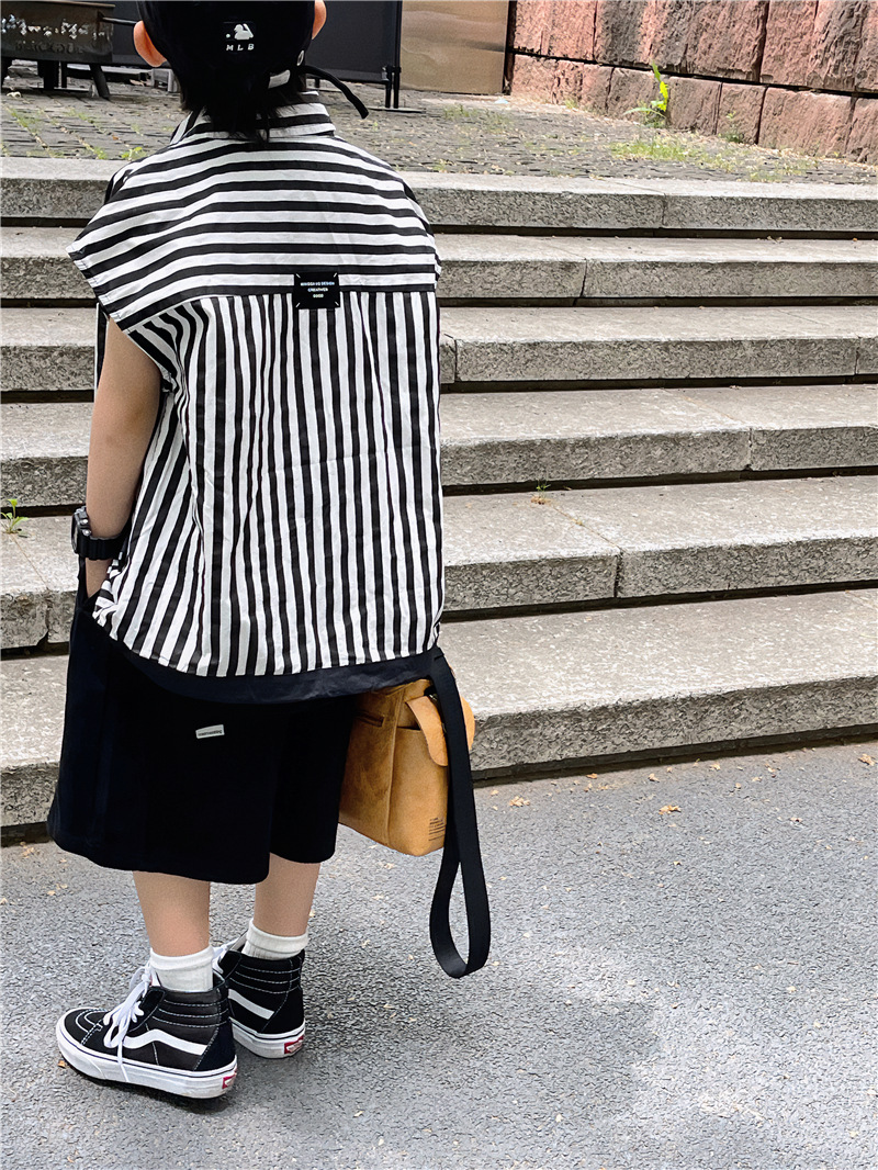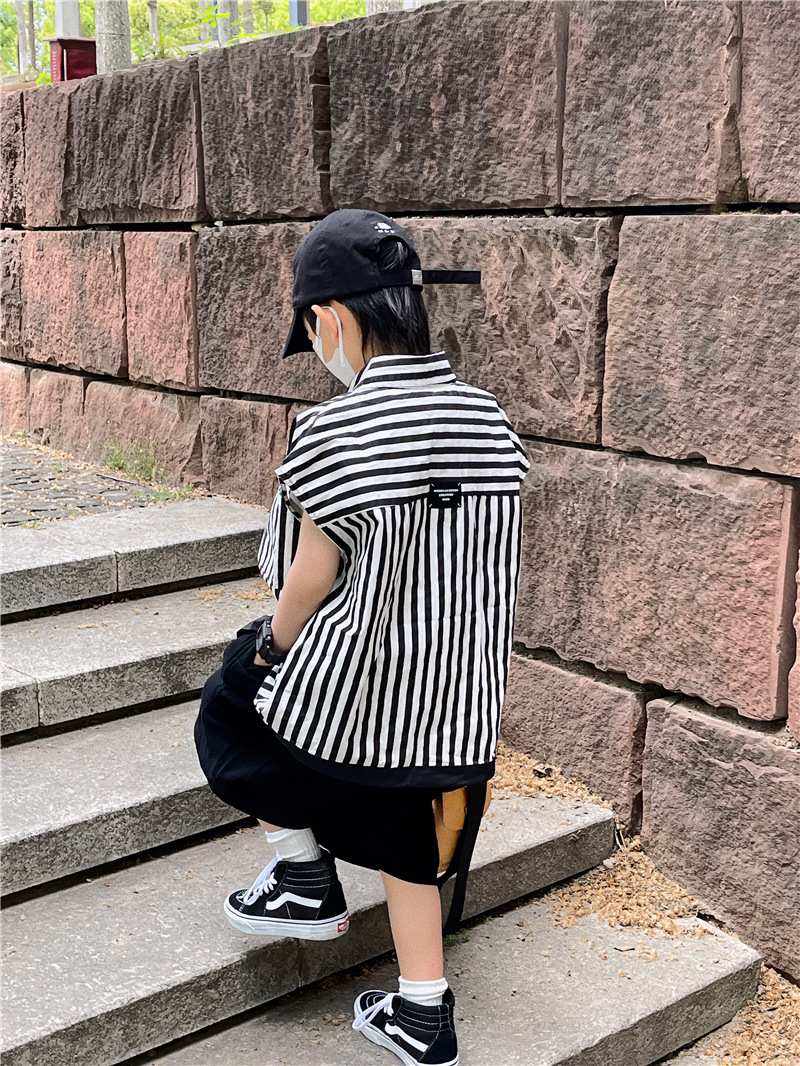 Bodo 아동복 남아 여름 민소매 셔츠 2023 새로운 한국 스타일 잘 생긴 아기 줄무늬 셔츠스토어 가기