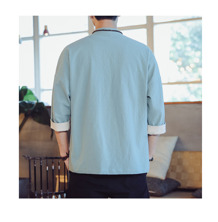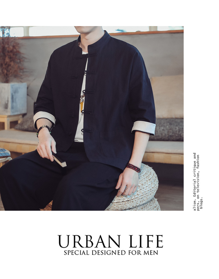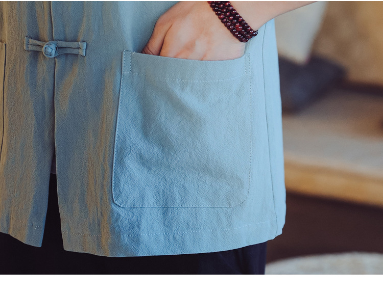 남자와 여자를 위한 중국 작풍 여름 면 및 린넨 자른 소매 셔츠 당나라 세트 중국 빈티지 버클 플러스 사이즈 린넨 차 재킷