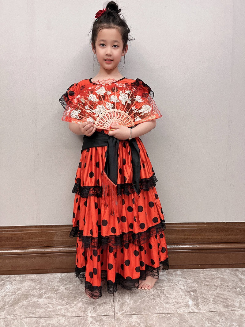 할로윈 아이 스페인 소녀 전통 플라멩코 댄서 이국적인 의상 볼 쇼 의상